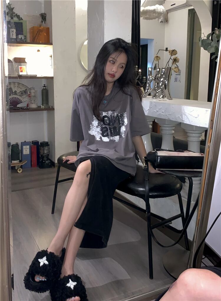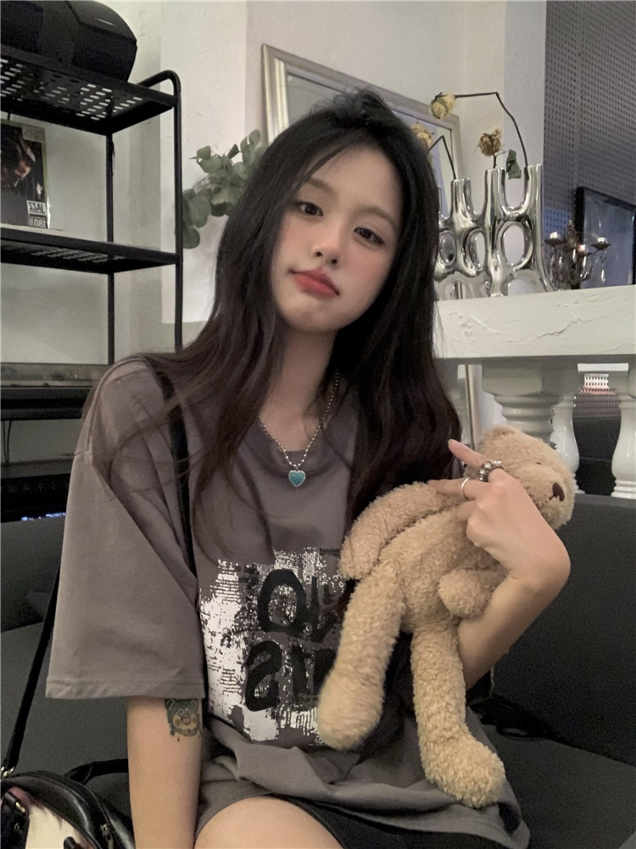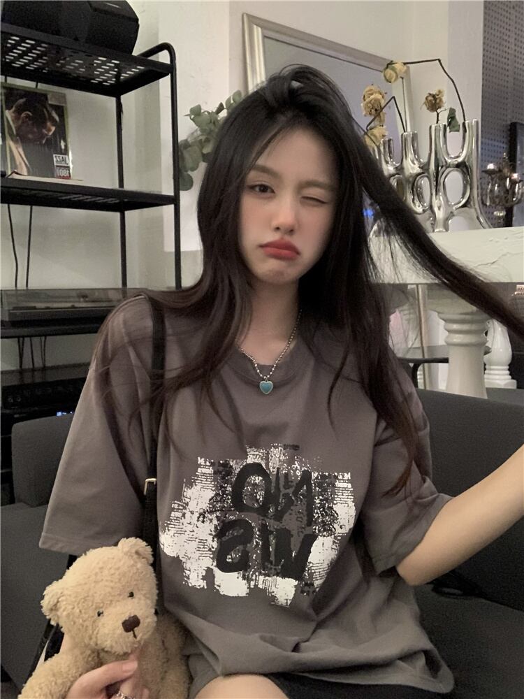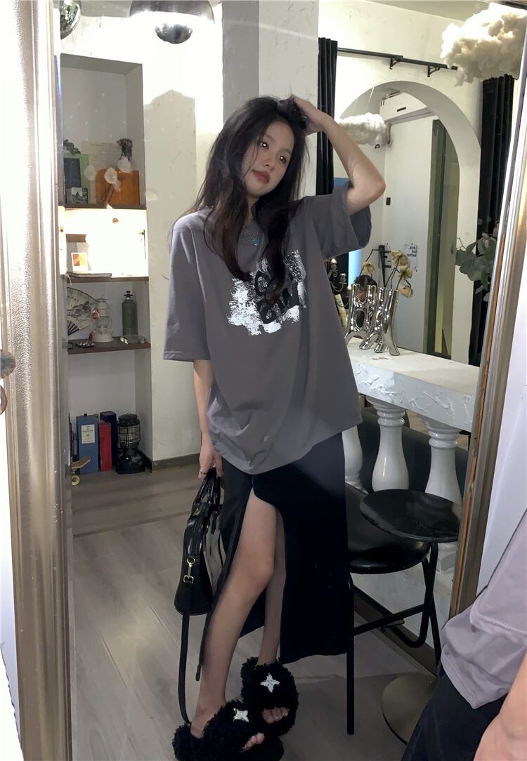 Sweet and cool letter printing half-sleeved T-shirt women's summer 2022 new style fashion loose mid-length top trendy 大人ガーリー スウィート キュート カジュアル サマー 夏物 Tシャツ 0921948364846182