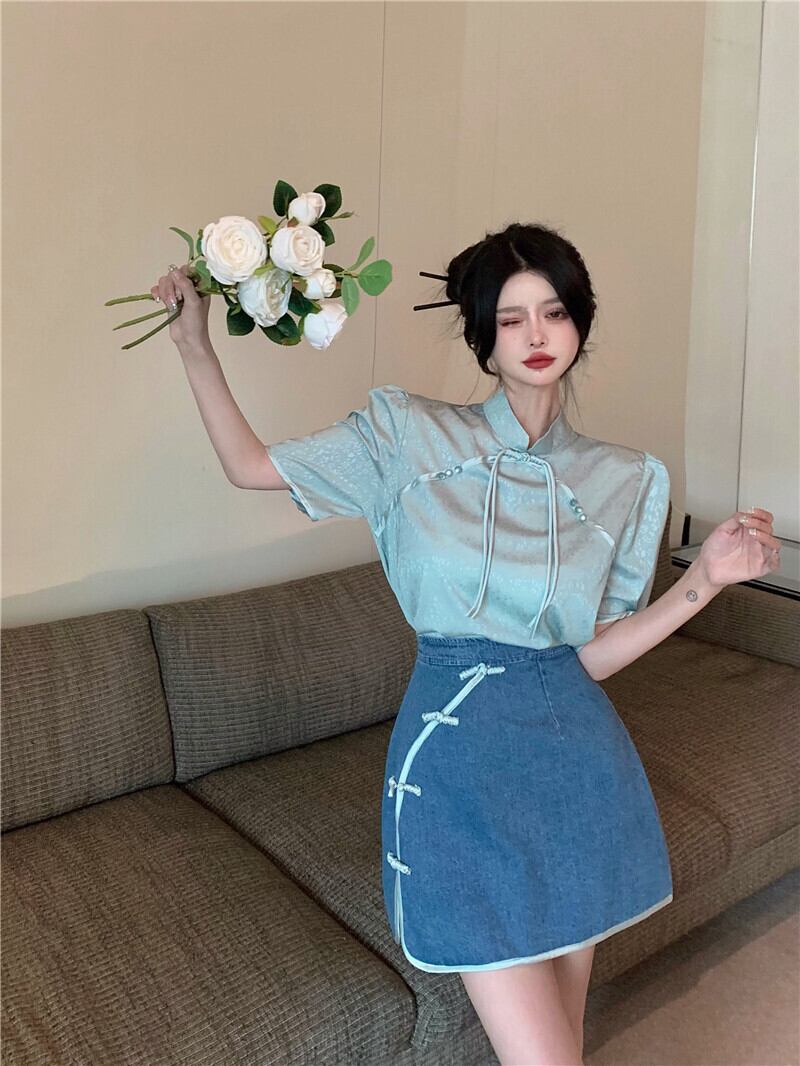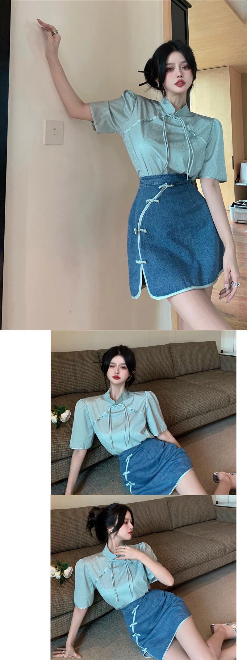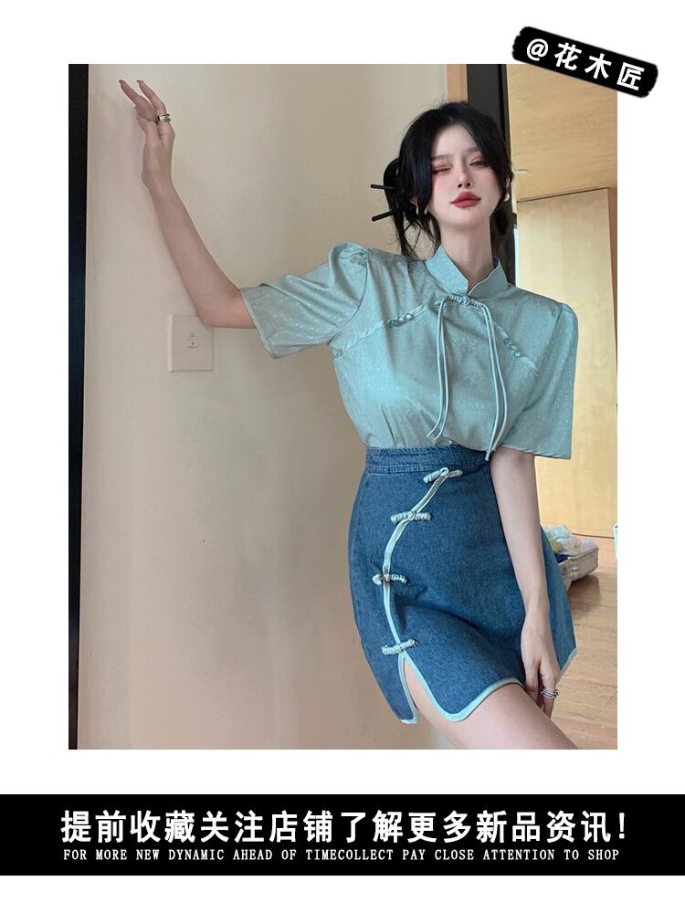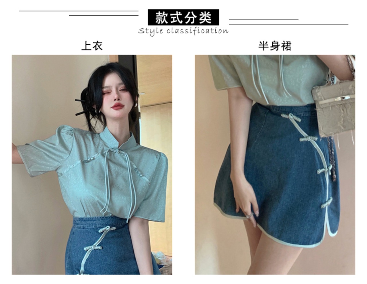 色:ワンpiececheongsamトップ,デニムスカートsingle