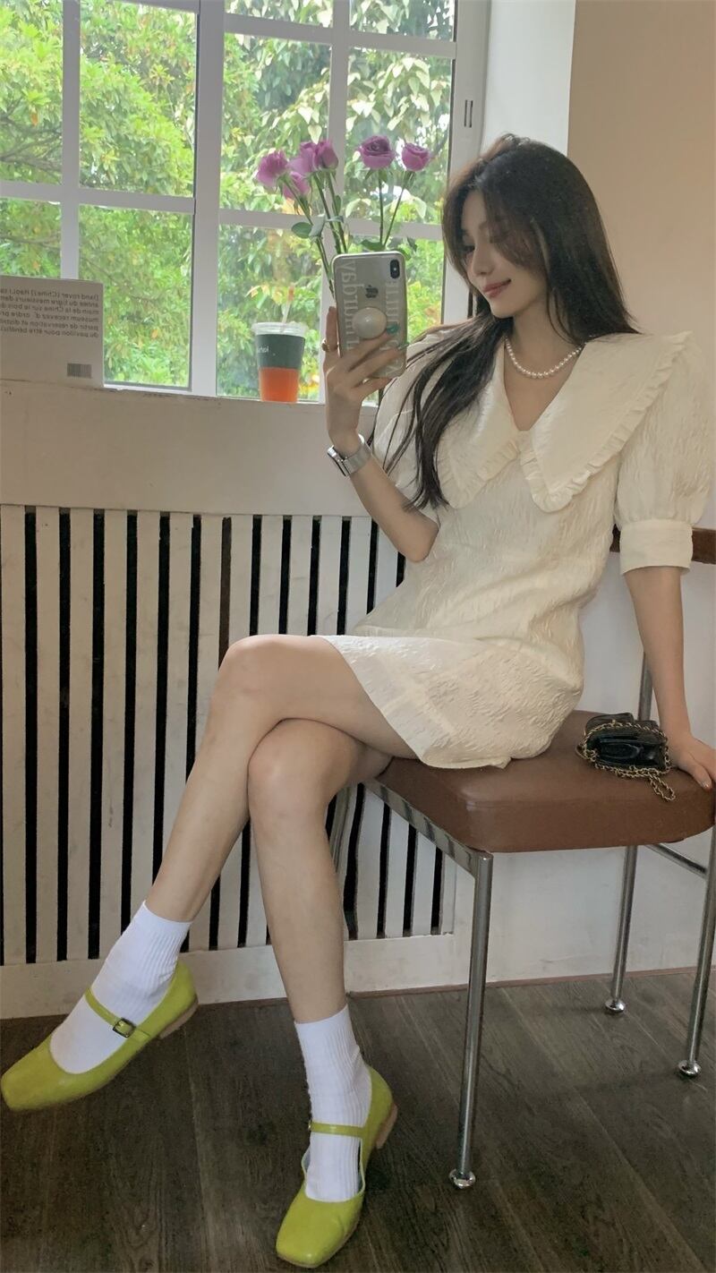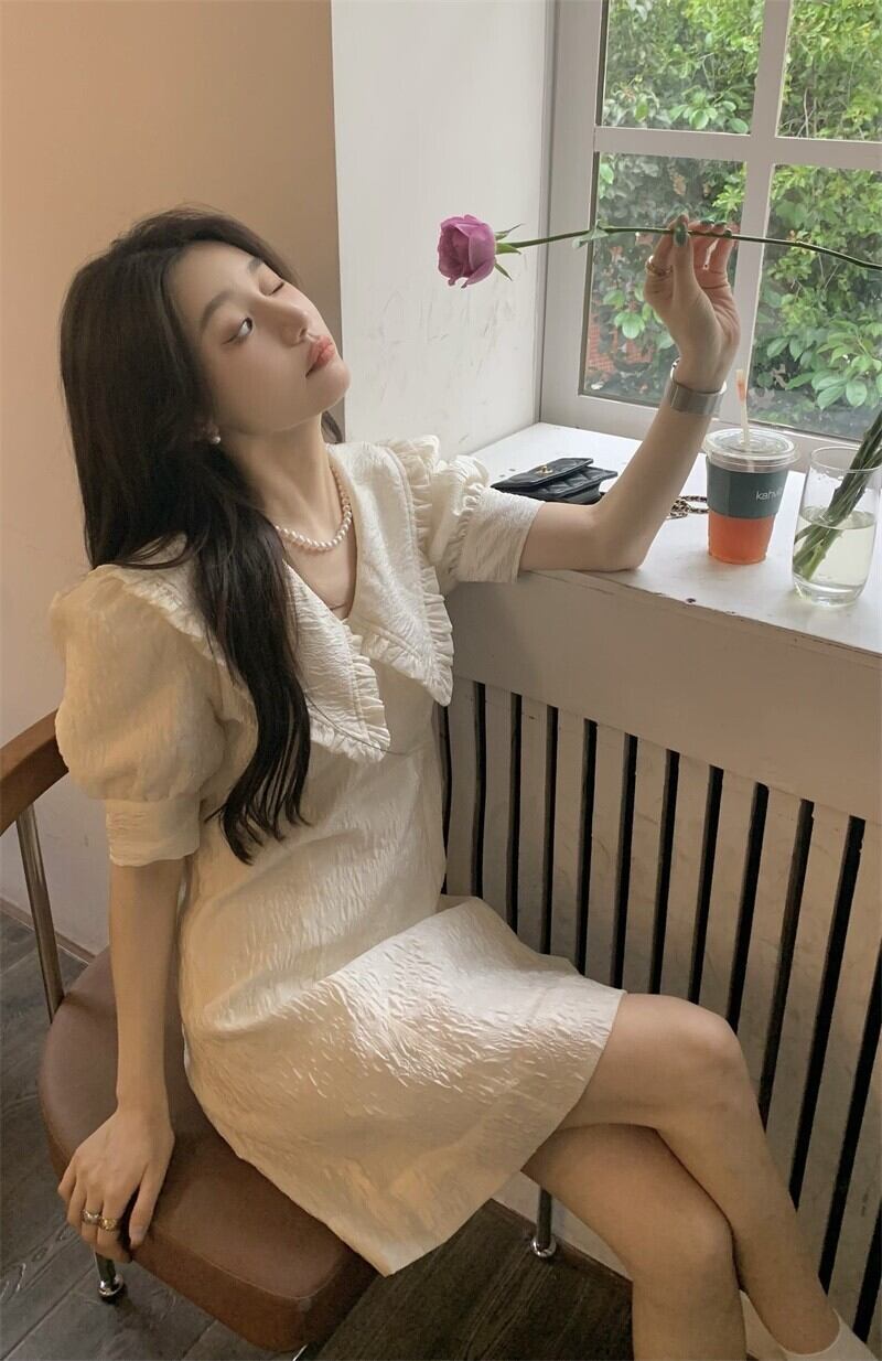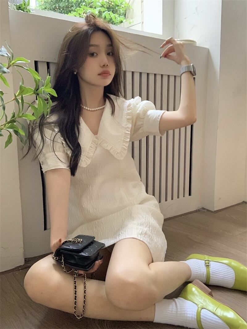 French sweet fungus edge doll collar dress female summer 2022 new first love temperament waist A-line skirt 大人ガーリー スウィート キュート カジュアル サマー 夏物 スカート Aライン 0921978147605478