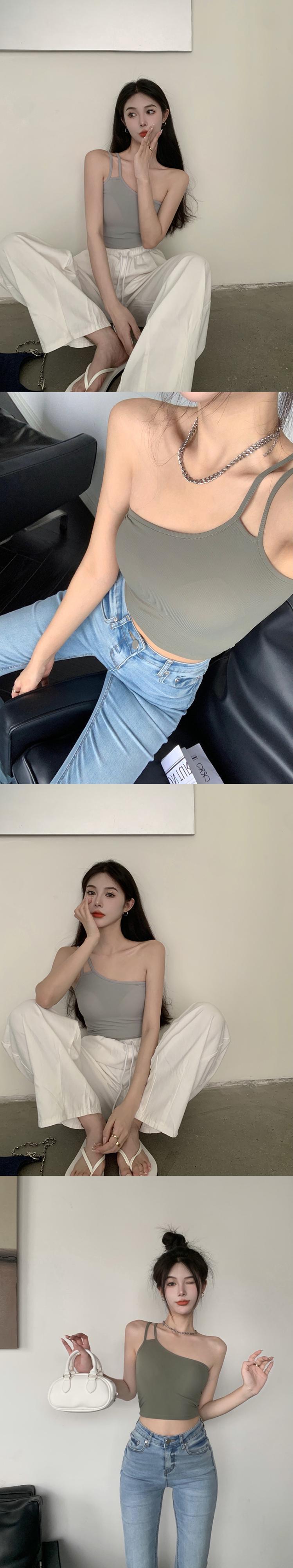 sense slanted shoulder camisole women's inner wear summer 2022 new self-cultivation black short top outer wear ショート ブラック サマー 夏物 0921978411496387