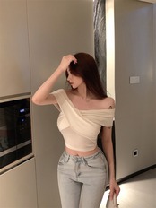 Hot strapless cross V-neck short-sleeved T-shirt women's summer 2022 new slim solid color design short top trend ショート サマー 夏物 Vネック スリム Tシャツ ソリッドカラー 0921930071832835