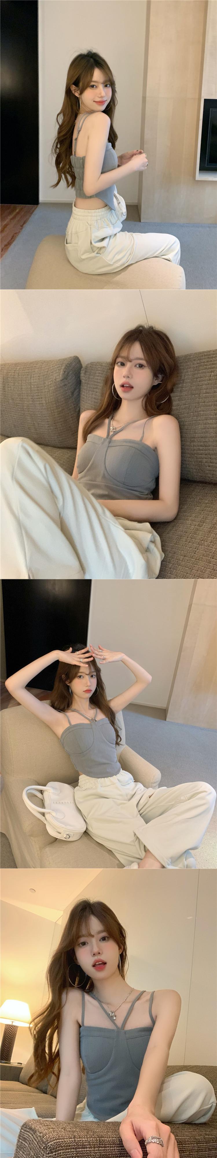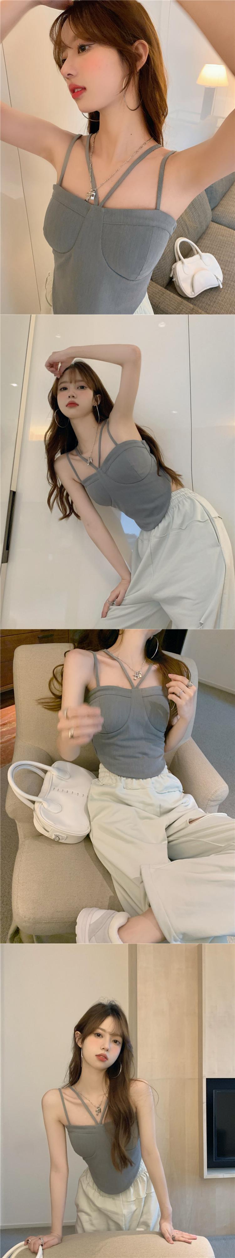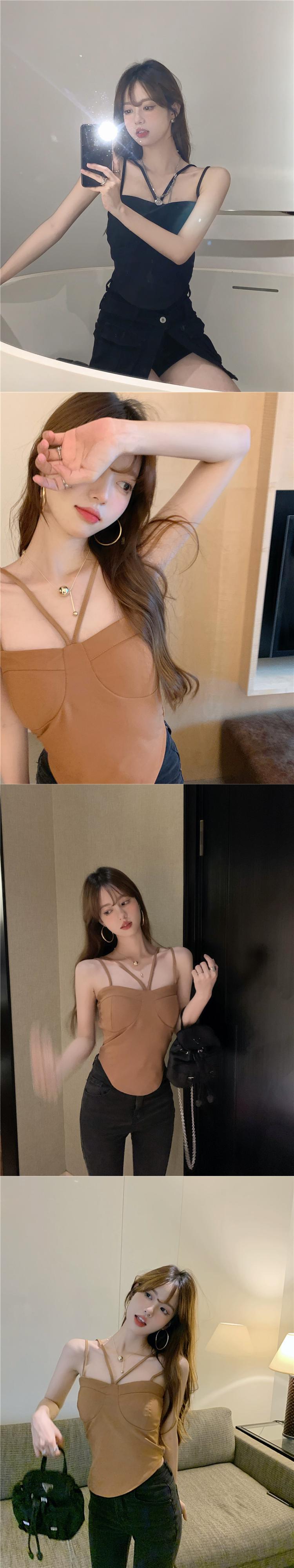 Hot with chest pad camisole women's inner wear summer 2022 new beautiful back slim irregular short top trendy ショート サマー 夏物 スリム 0921938869811384