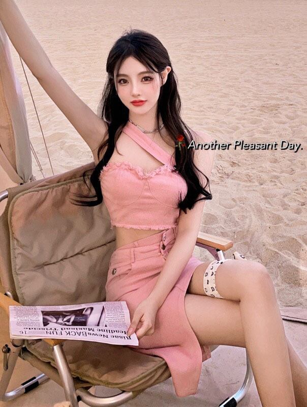Sweet and spicy pink frayed denim vest women's inner wear summer 2022 new self-cultivation beautiful back short tops ショート ピンク 大人ガーリー スウィート キュート カジュアル サマー 夏物 0921964569661274