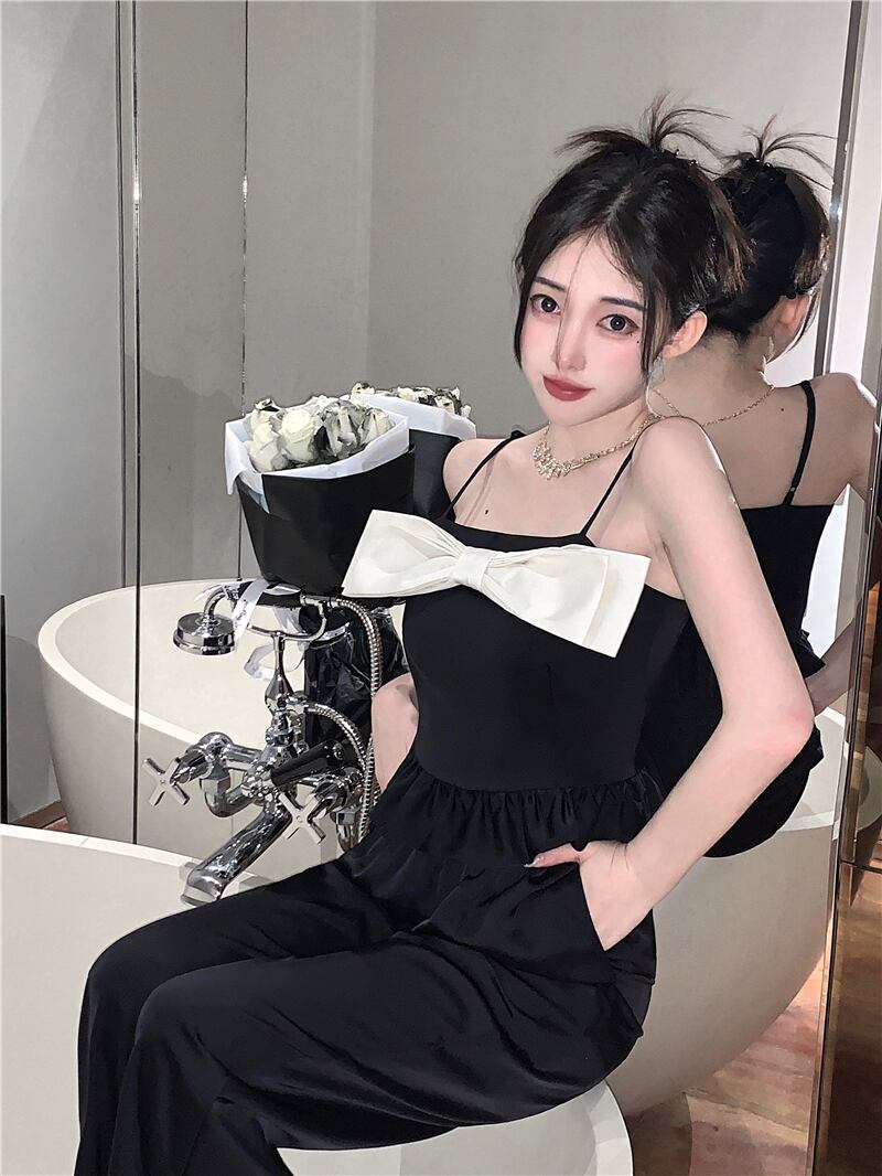 Chic bow camisole women's outer wear summer 2022 new sexy slim slimming back short top ショート リボン サマー 夏物 スリム 0921972331215488