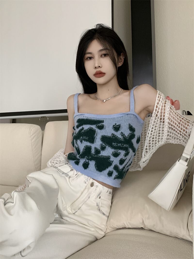 Net red retro chic jacquard camisole women's inner wear summer 2022 new all-match slim short top trendy ショート レッド レトロ サマー 夏物 スリム 0921988249221523