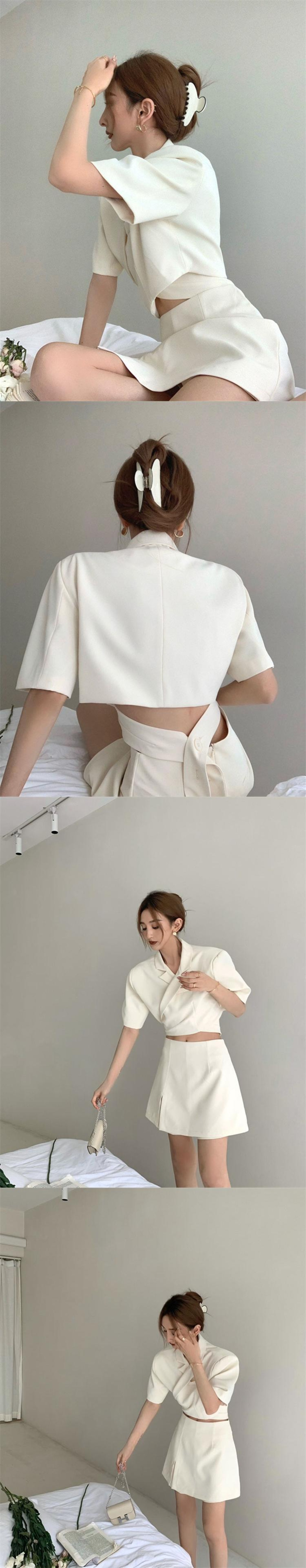 Black short-sleeved suit jacket women's summer 2022 new design niche cross waist short suit top ショート ブラック サマー 夏物 0921964298060085