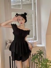 Hepburn style black one-piece shorts women's summer 2022 new style off-the-shoulder chic waist high-quality one-piece jumpsuit ブラック サマー 夏物 ショーツ ブルマー 0921981696320170