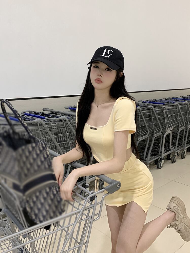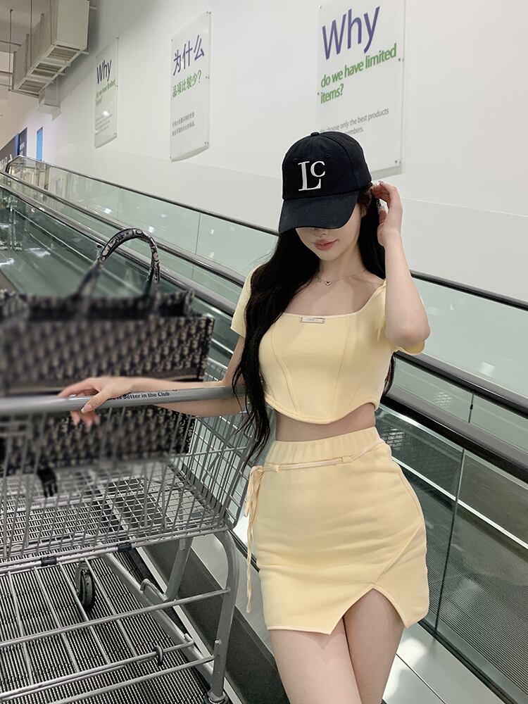 Hot fashion suit female summer 2022 new style short-sleeved t-shirt bag hip skirt pure desire wind two-piece set サマー 夏物 スカート Tシャツ ピュア 0921997564288620