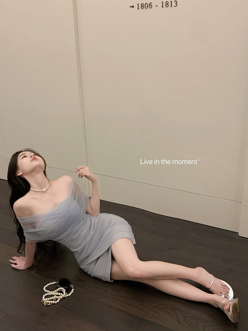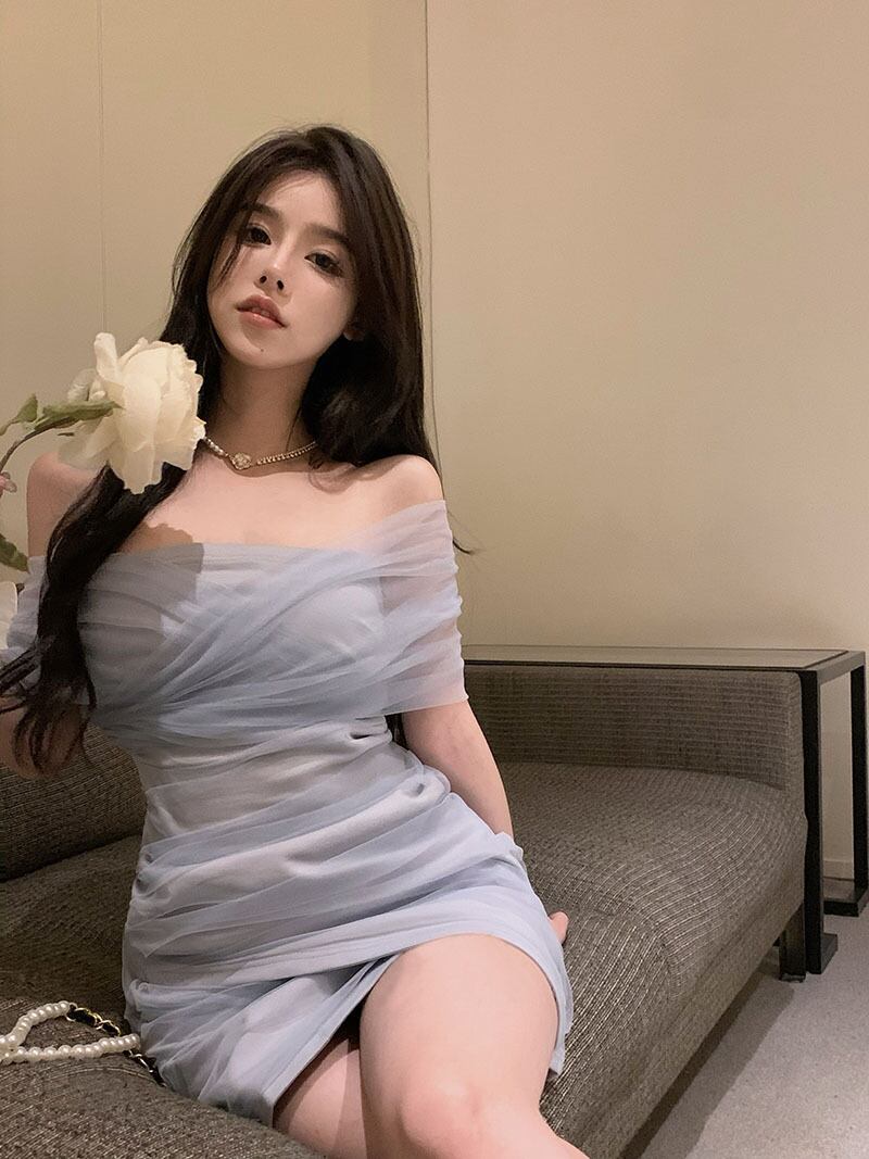 sense mesh cross one-shoulder dress women's summer 2022 new temperament waist irregular bag hip skirt サマー 夏物 メッシュ スカート 0921950407532006