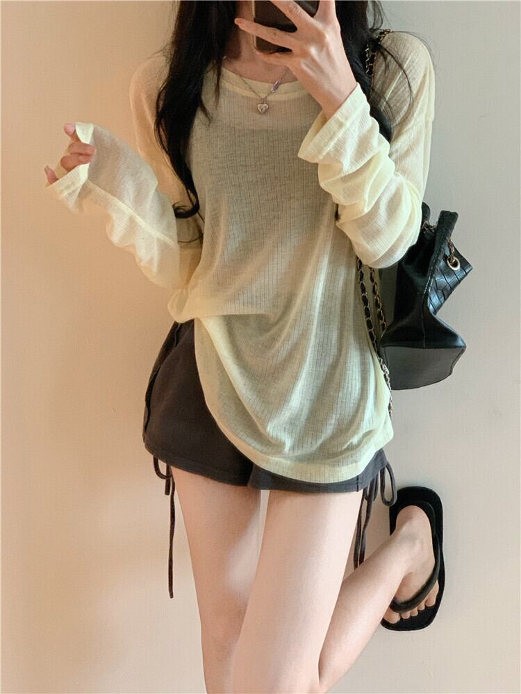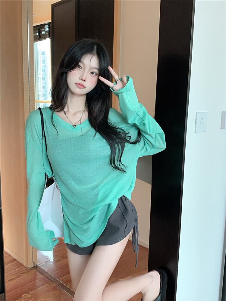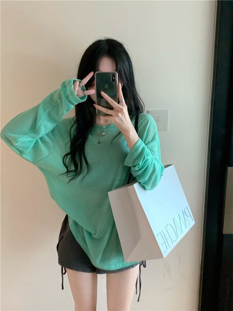 Candy-colored thin section sunscreen long-sleeved T-shirt women's spring 2022 new version chic all-match thin top ins tide ロング レッド スプリング 春物 Tシャツ 0921991059618965
