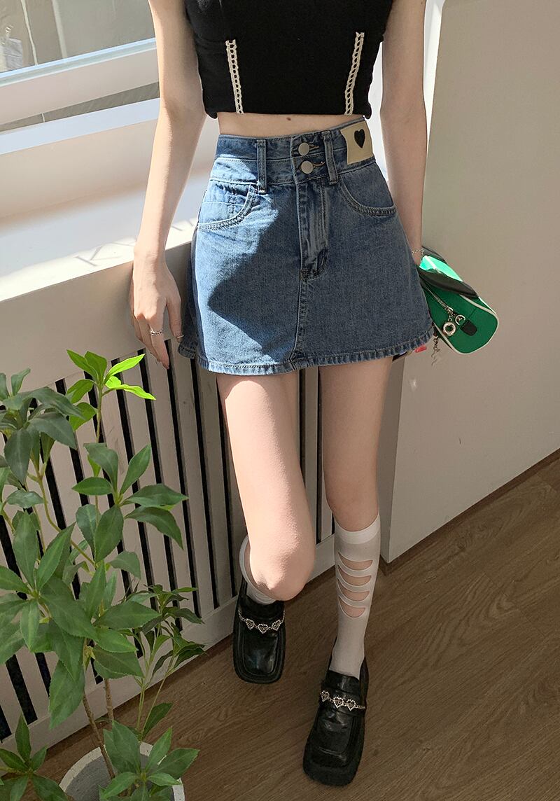 sense love labeling denim skirt women's summer 2022 new net red high waist thin a-line short skirt ハイウェスト ショート レッド サマー 夏物 スカート Aライン 0921936182934876