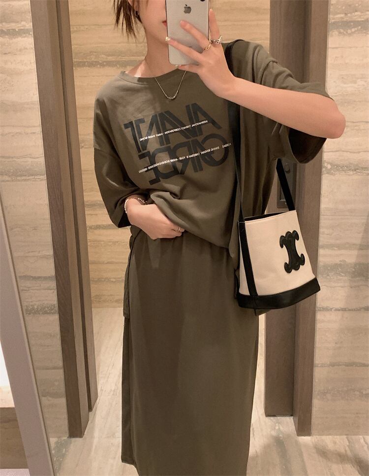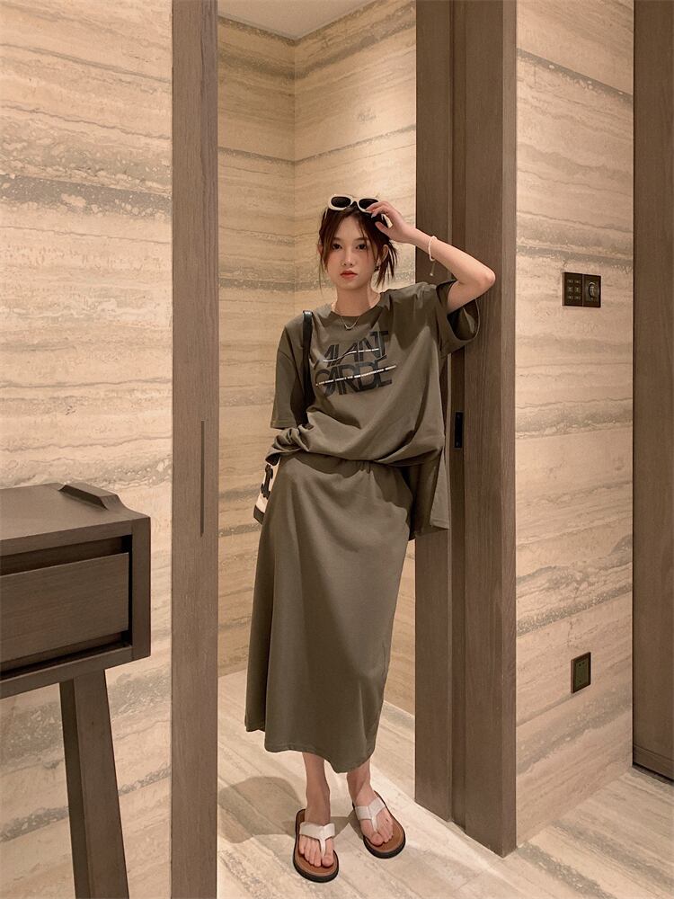 Lazy wind casual fashion suit female summer 2022 new loose t-shirt skirt salt dress two-piece suit カジュアル サマー 夏物 スカート Tシャツ 0921956969667786