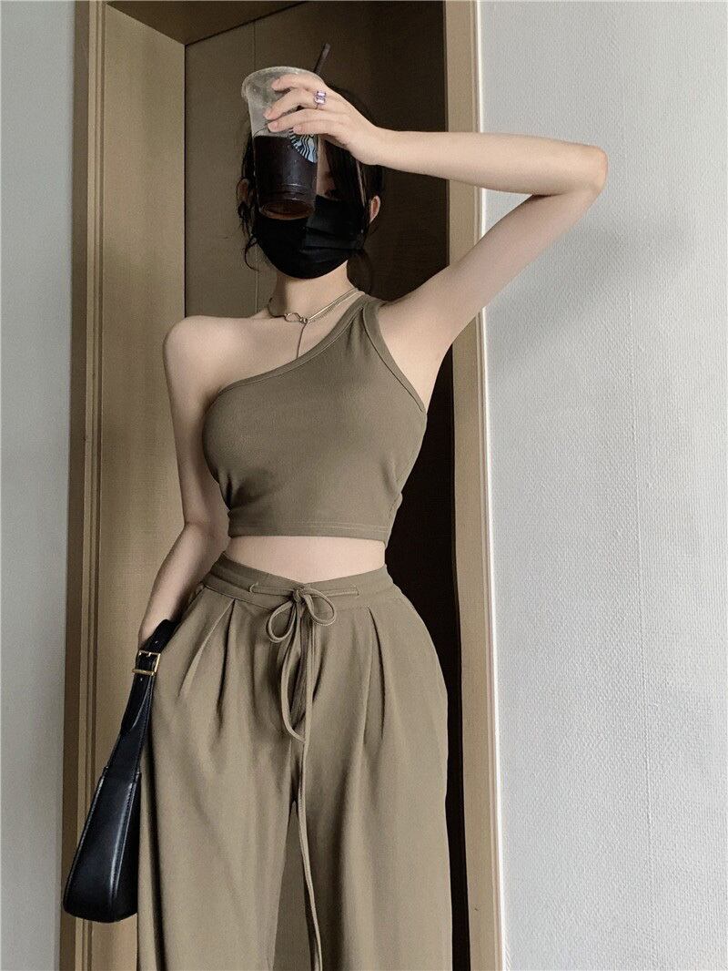 Hot slanted shoulder vest women's inner wear summer 2022 new slim fit and thin solid color design short top outer wear ショート サマー 夏物 スリム ソリッドカラー 0921981156046122