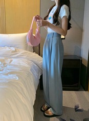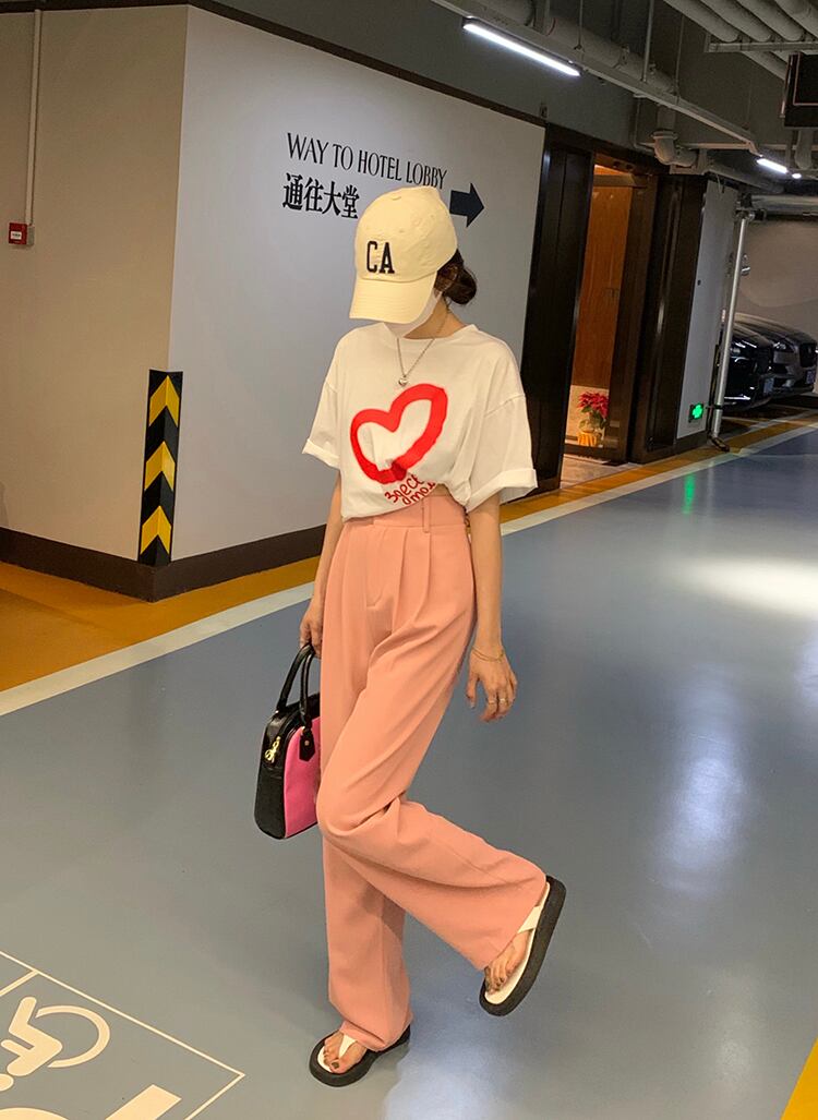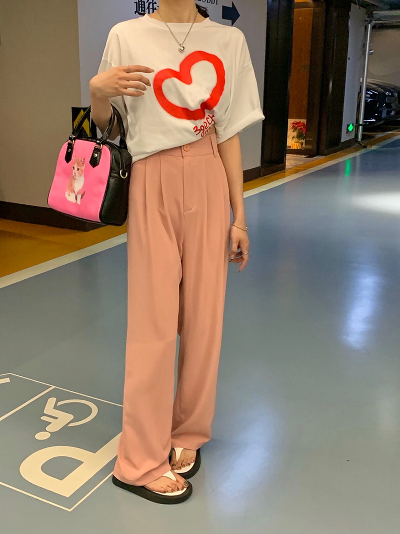 Lazy wind pink drape casual pants women's summer 2022 new version all-match straight tube thin and mopping wide-leg pants ピンク カジュアル サマー 夏物 0921996816390504