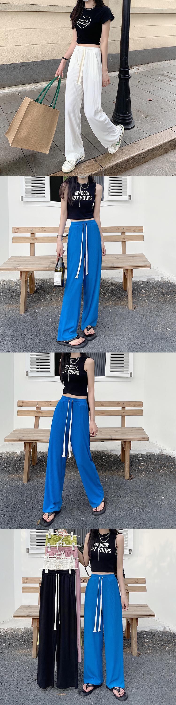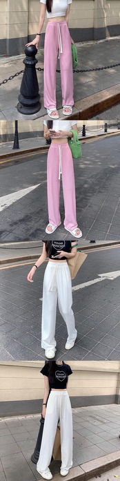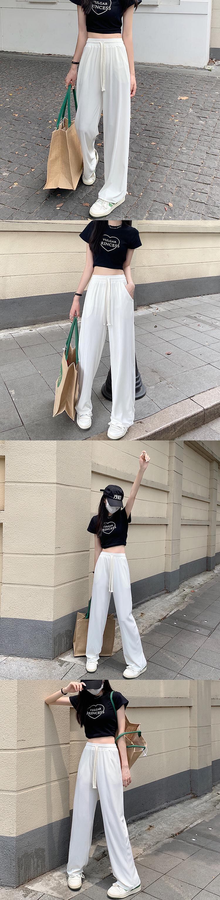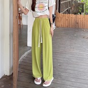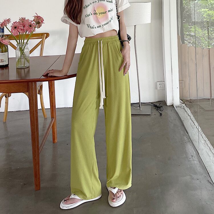 Green drawstring wide leg pants women's high waist drape summer 2022 new version all-match loose and thin casual pants ハイウェスト カジュアル サマー 夏物 ワイドレッグ ワイドパンツ グリーン 0921924196226656