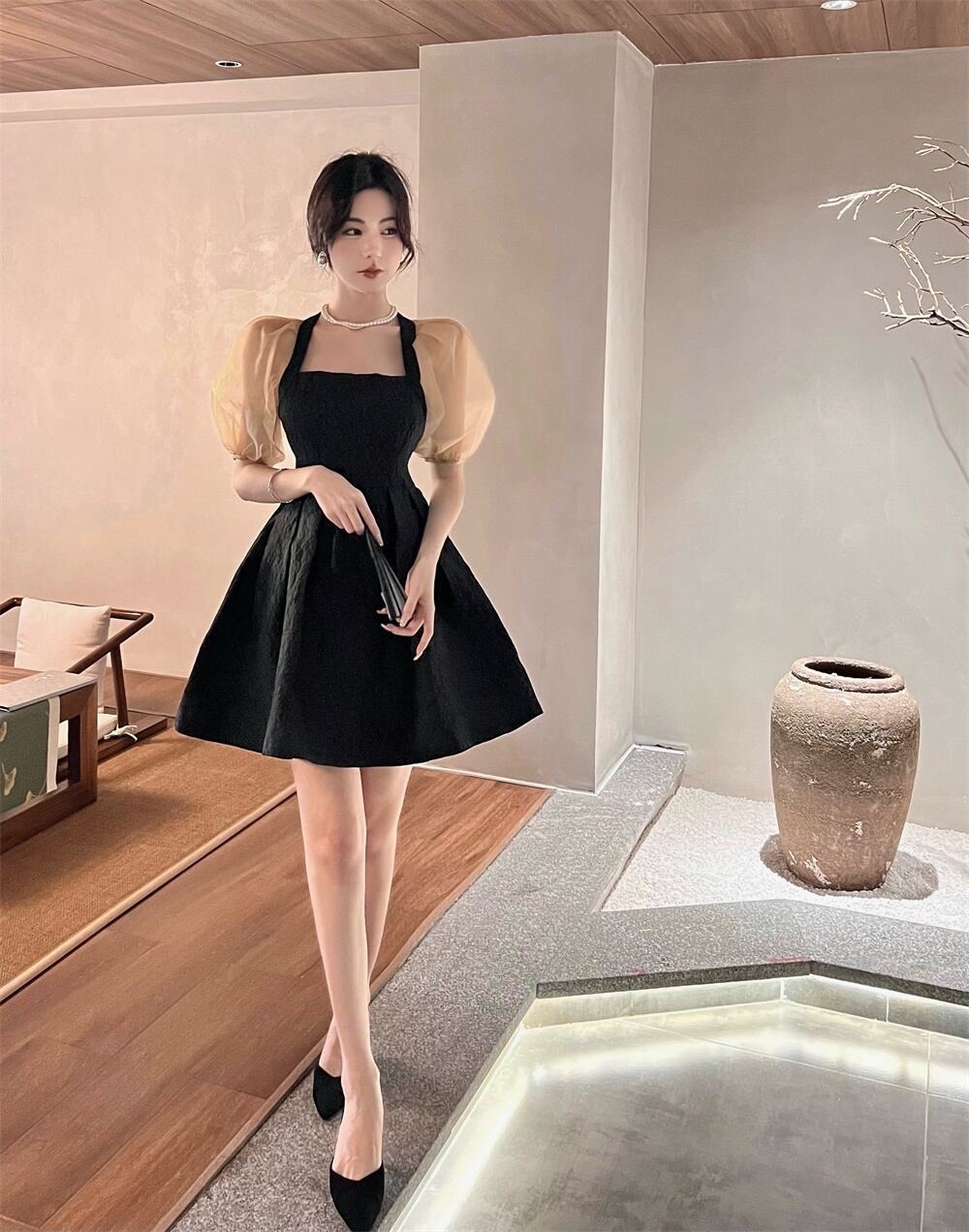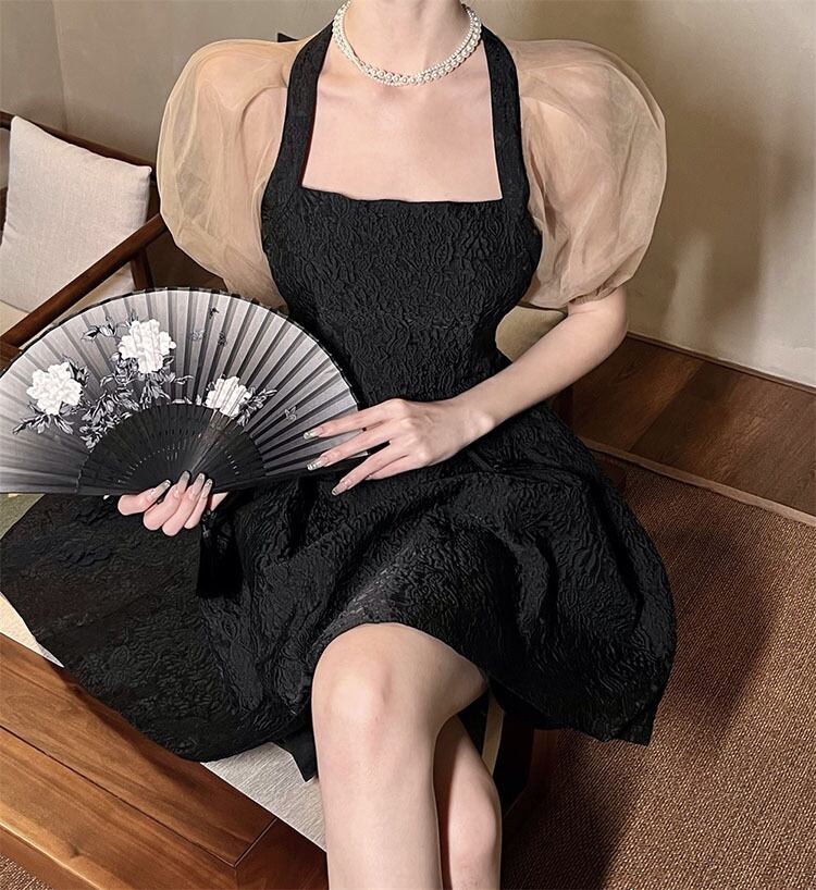 French retro square neck mesh puff sleeve dress women's summer 2022 new temperament jacquard waist tutu skirt レトロ サマー 夏物 メッシュ スカート パニエ ペチコート スクウェア 0921948137913400