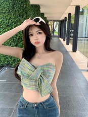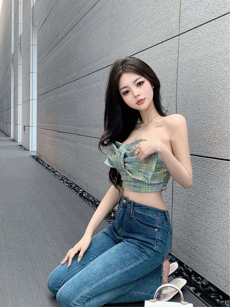 Sweet and spicy style colorful bow tube top top women's outer wear summer 2022 new slim short wrap chest vest trend ショート リボン 大人ガーリー スウィート キュート カジュアル サマー 夏物 スリム 0921973923964354