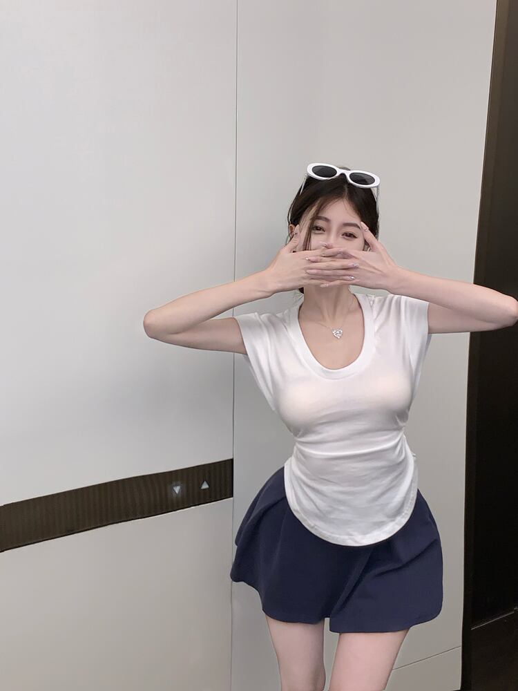 Be careful machine low-neck white short-sleeved t-shirt female ins tide summer 2022 new version of the all-match self-cultivation pure desire top ホワイト サマー 夏物 Tシャツ ピュア 0921910317127082