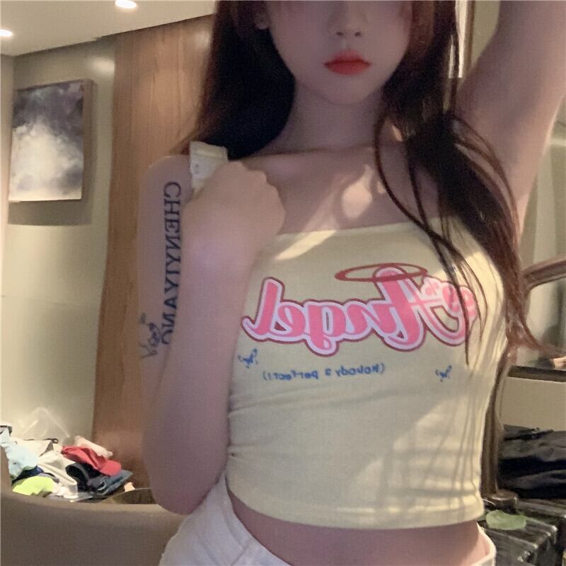Hot design camisole women's inner wear summer 2022 new slim and chic letter short top outer wear ショート サマー 夏物 スリム 0921972527960650
