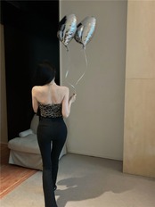 Hot chic temperament three-dimensional flocking tube top vest female outer wear summer 2022 new sexy short top trend ショート サマー 夏物 0921937552277689
