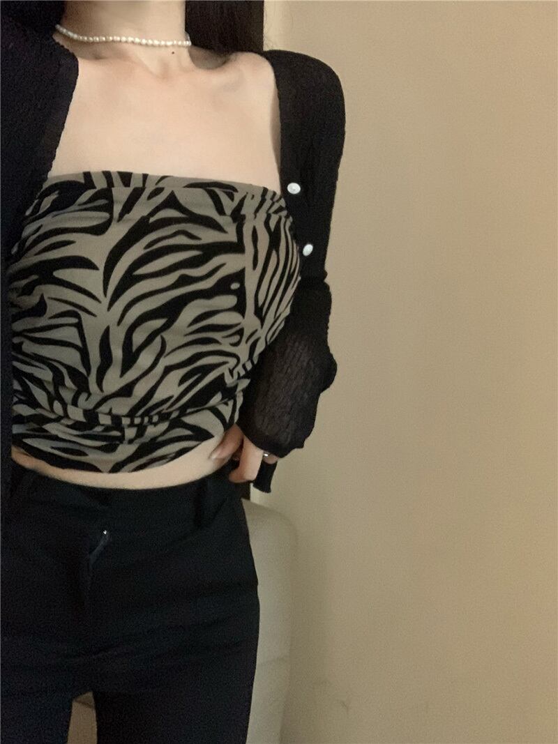 色:Tubeトップレパードプリント柄ワンpiece,Cardiganブラックワン-piece