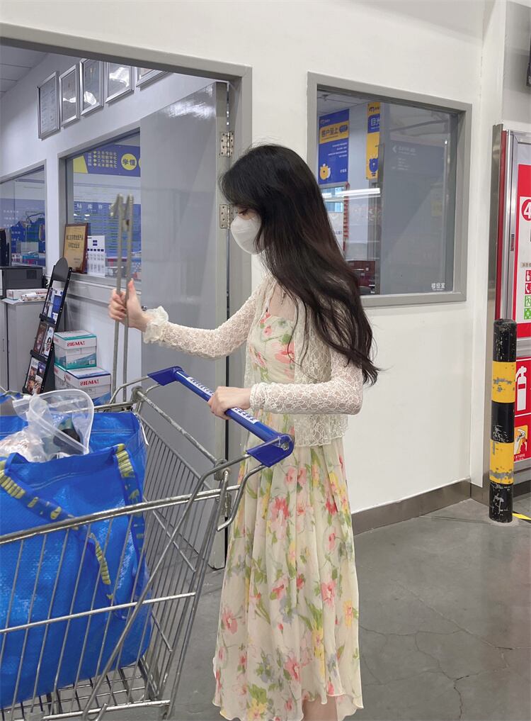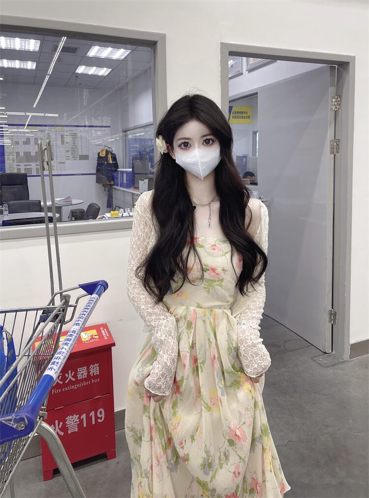 Gentle style tea break sling floral dress women's mid-length summer 2022 new niche temperament waist skirt サマー 夏物 花柄 スカート 0921925013492494