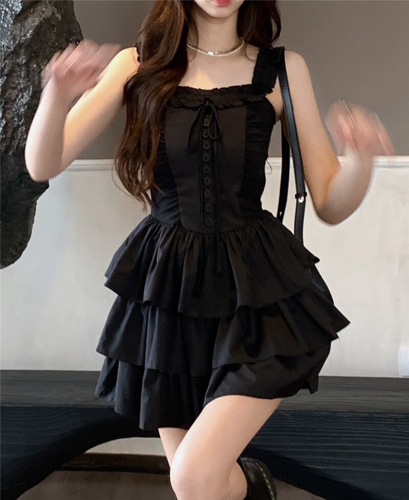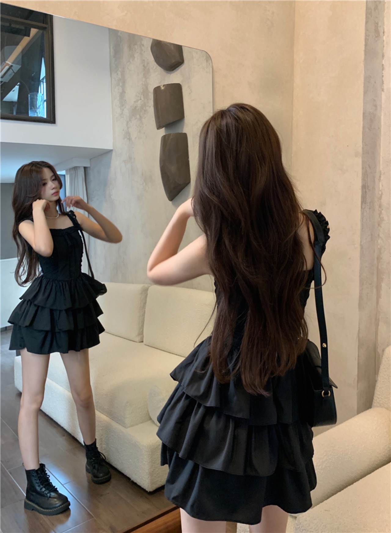 Hepburn style black vest dress women's high-end summer 2022 new chic small waist cake skirt ブラック サマー 夏物 スカート 0921998235147413