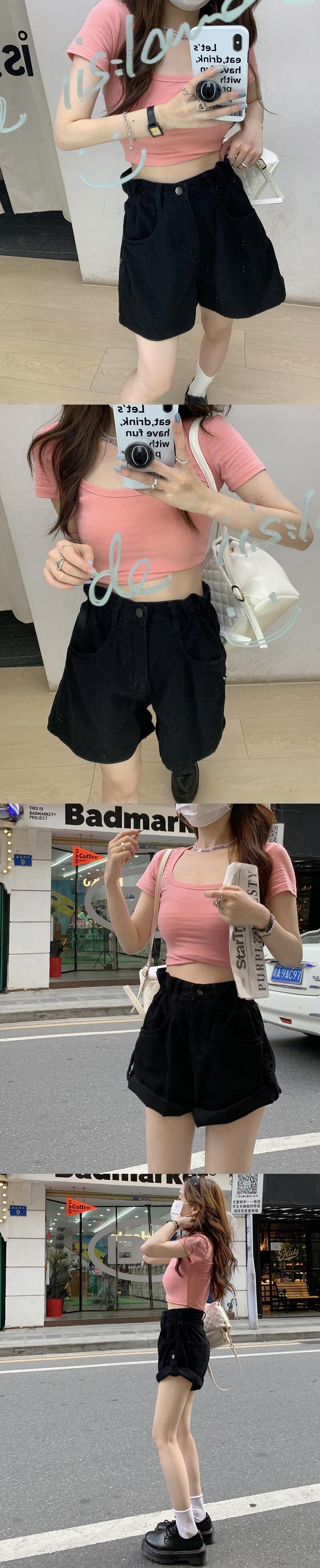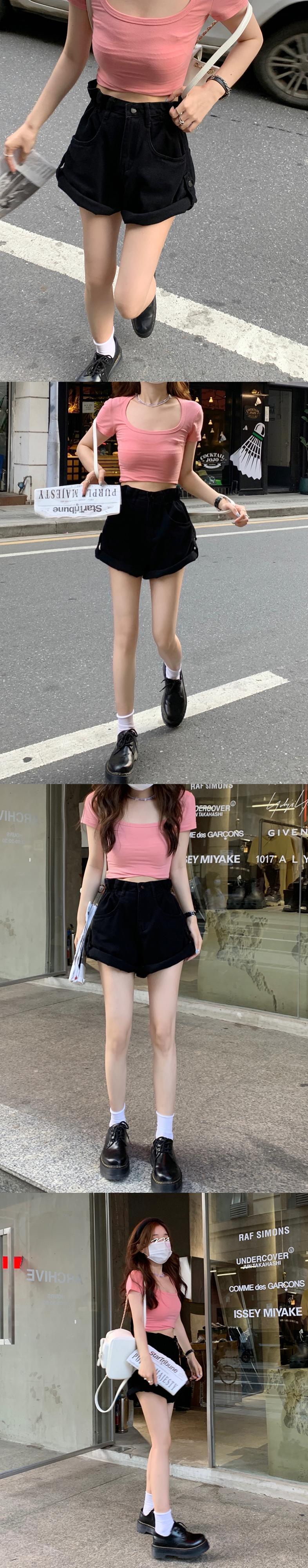 sense curly denim shorts women's summer 2022 new fashion small tall waist thin loose wide leg pants サマー 夏物 ショーツ ブルマー ワイドレッグ ワイドパンツ 0921989246450271