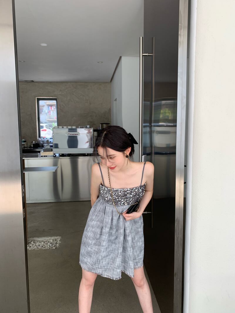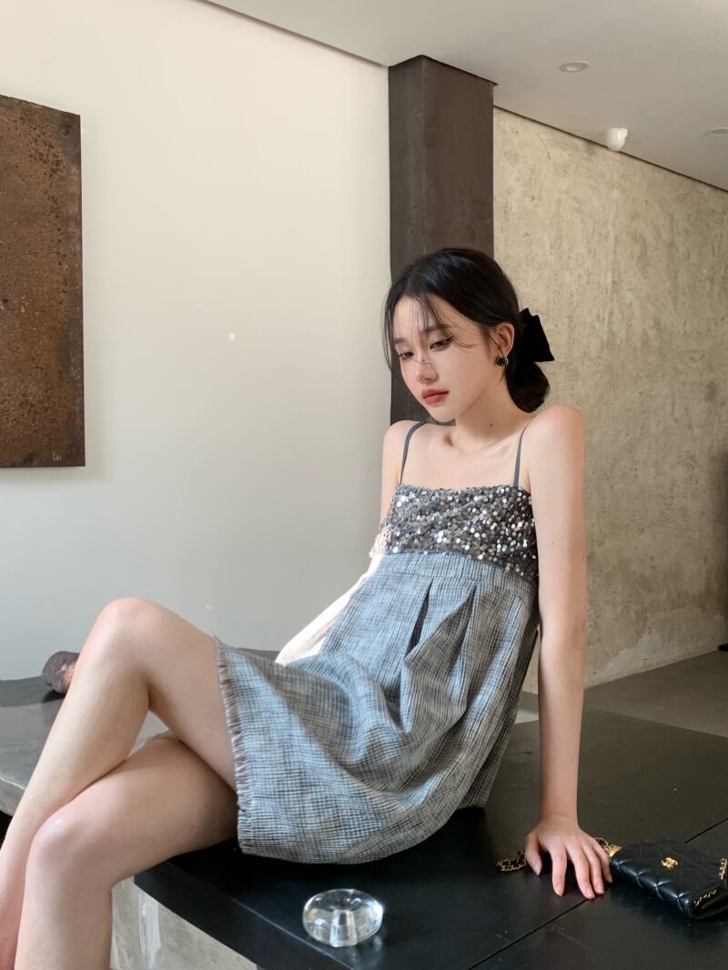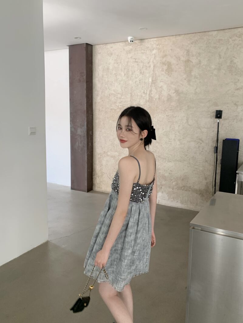Chic sequins small fragrant suspender dress female high-end summer 2022 new small waist a-line skirt サマー 夏物 スカート Aライン 092192544740045