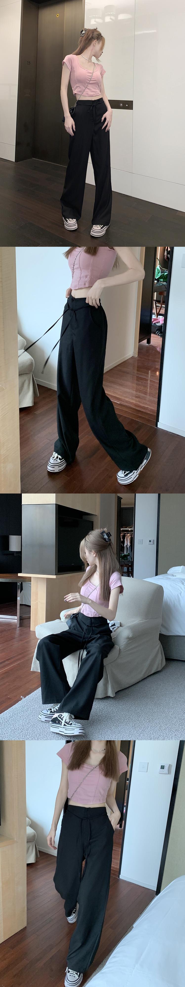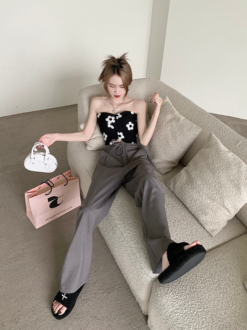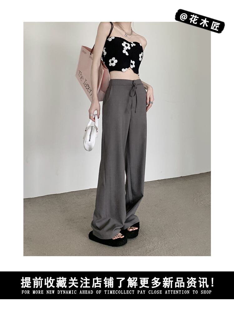 Lace-up gray suit pants women's drape wide-leg pants summer 2022 new all-match loose high waist slim casual pants ハイウェスト レース カジュアル サマー 夏物 スリム レースアップ 0921910403510723