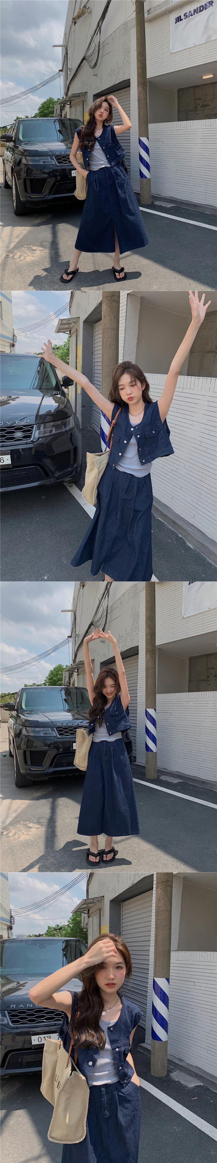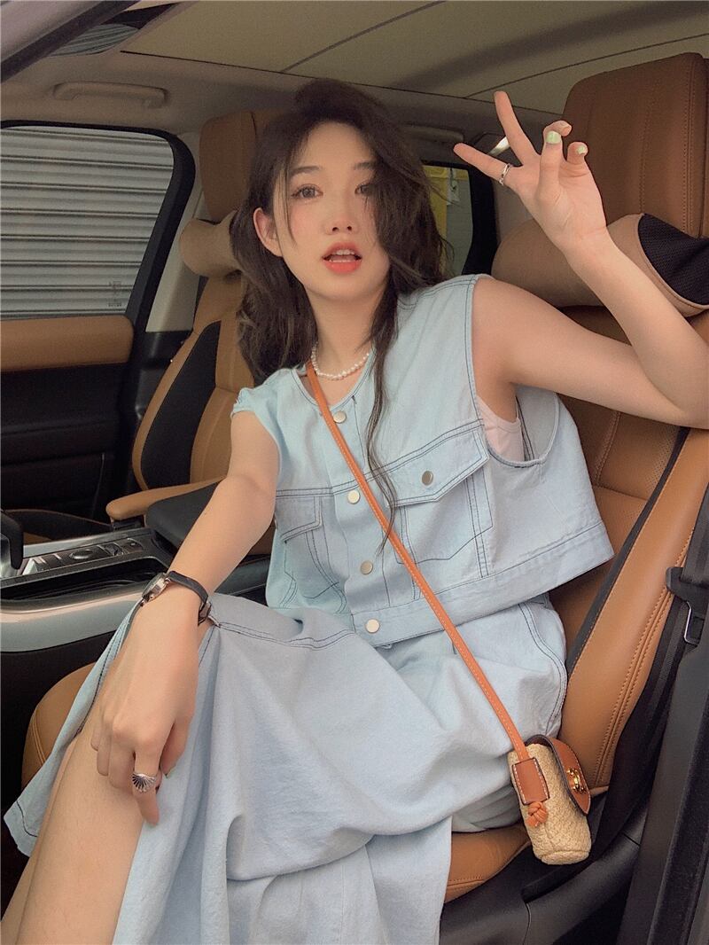 Western style short denim vest jacket women's summer 2022 new style fashion loose short vest ショート サマー 夏物 0921995170529680