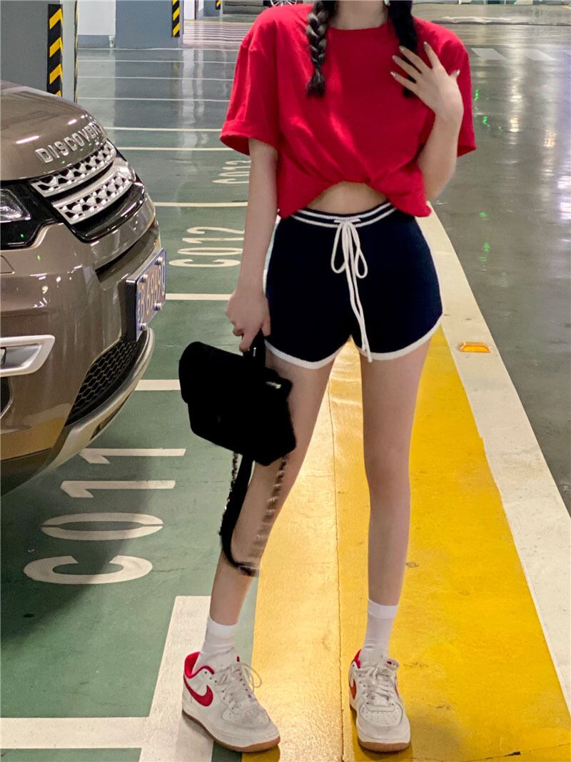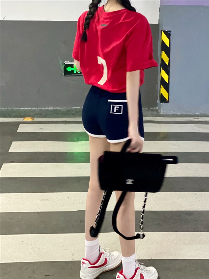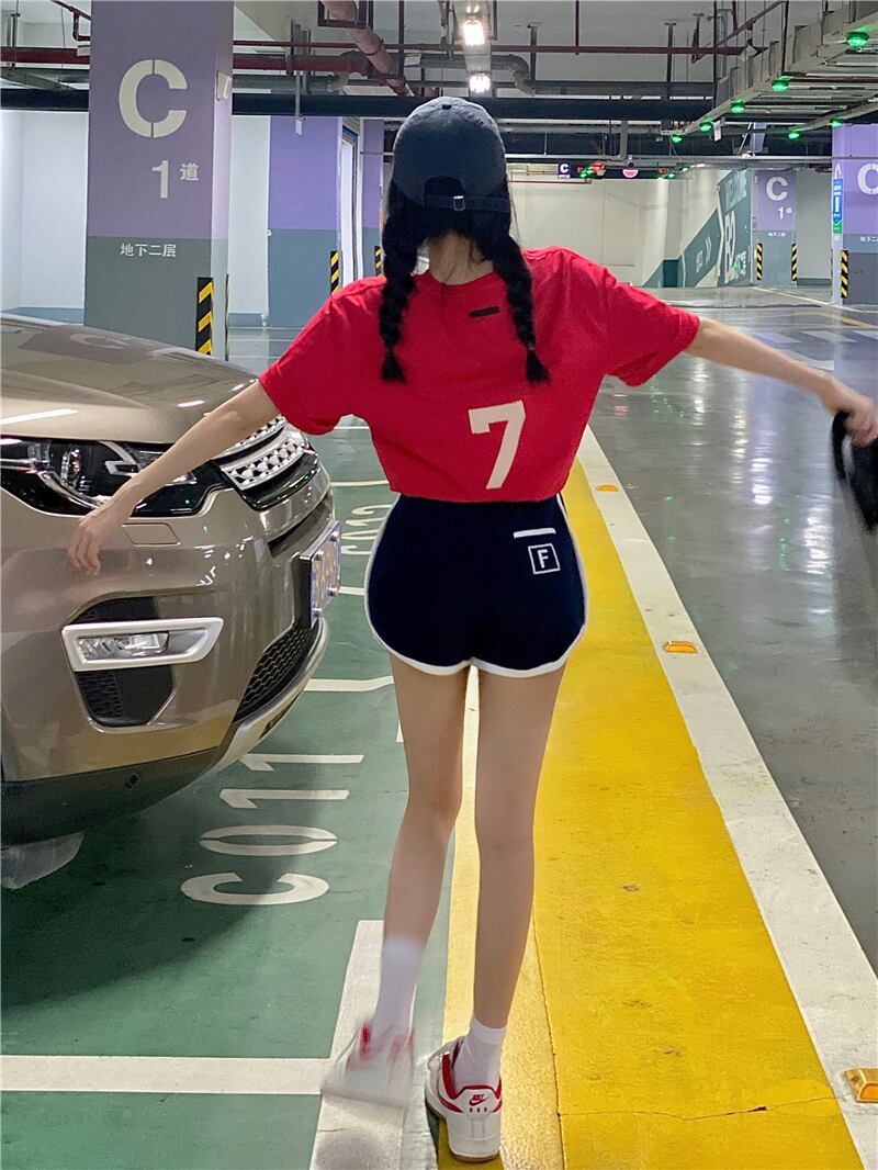 sense niche red short-sleeved T-shirt women's summer 2022 new fashion loose mid-length top trendy レッド サマー 夏物 Tシャツ 092191244148316