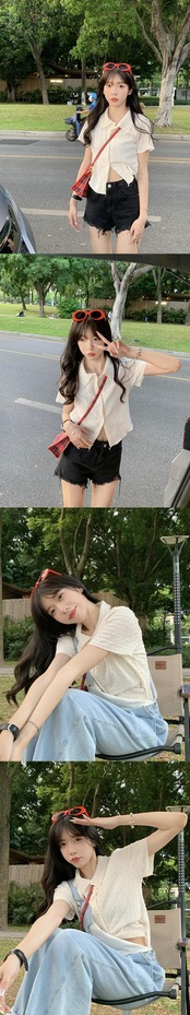 Small fresh white short-sleeved shirt women's summer 2022 new version of the Western style chic slim slim short top ショート ホワイト サマー 夏物 スリム 0921947485657703