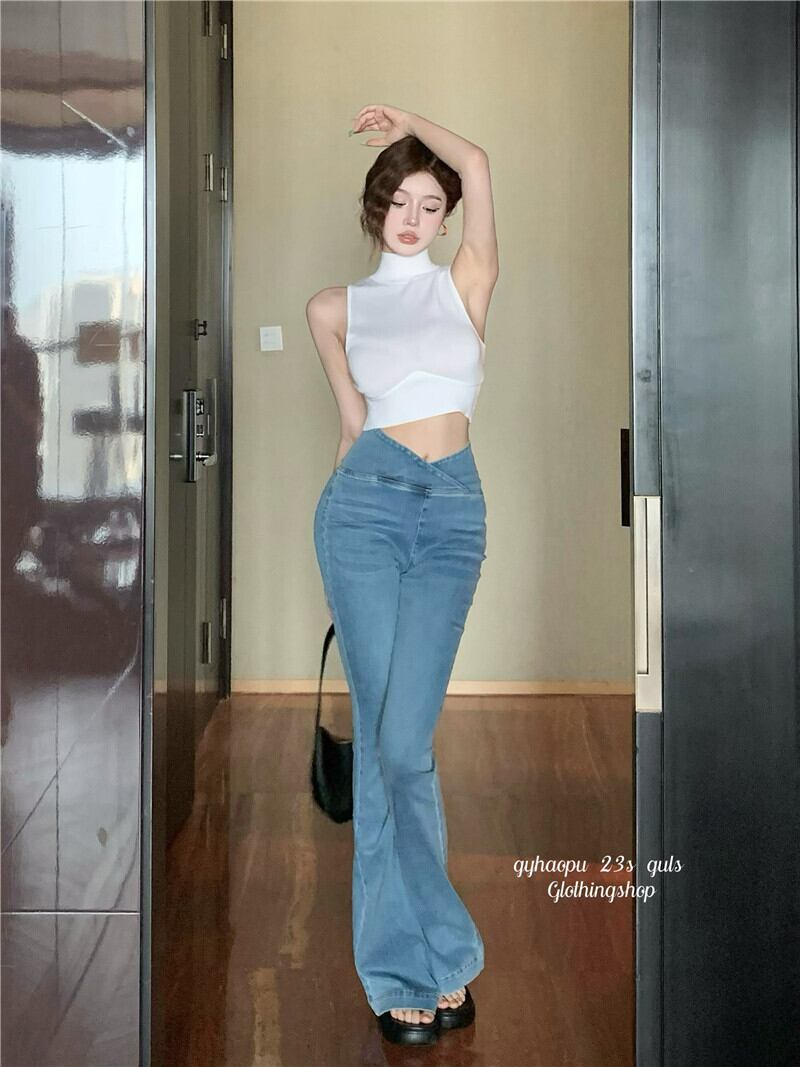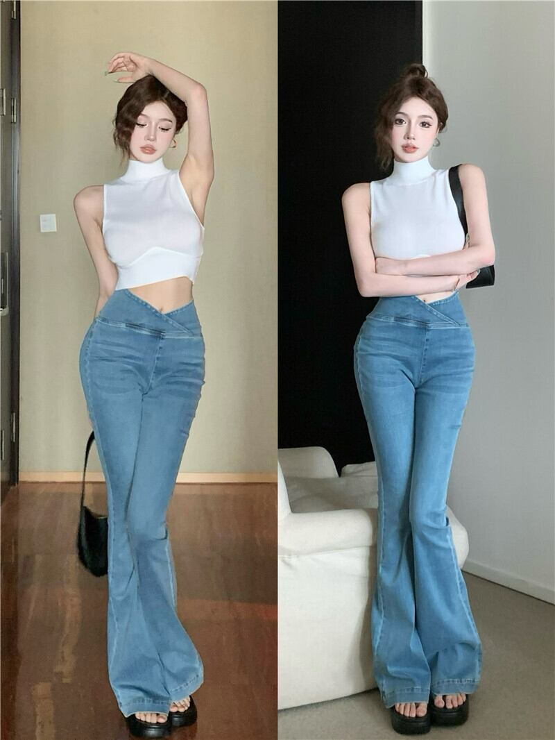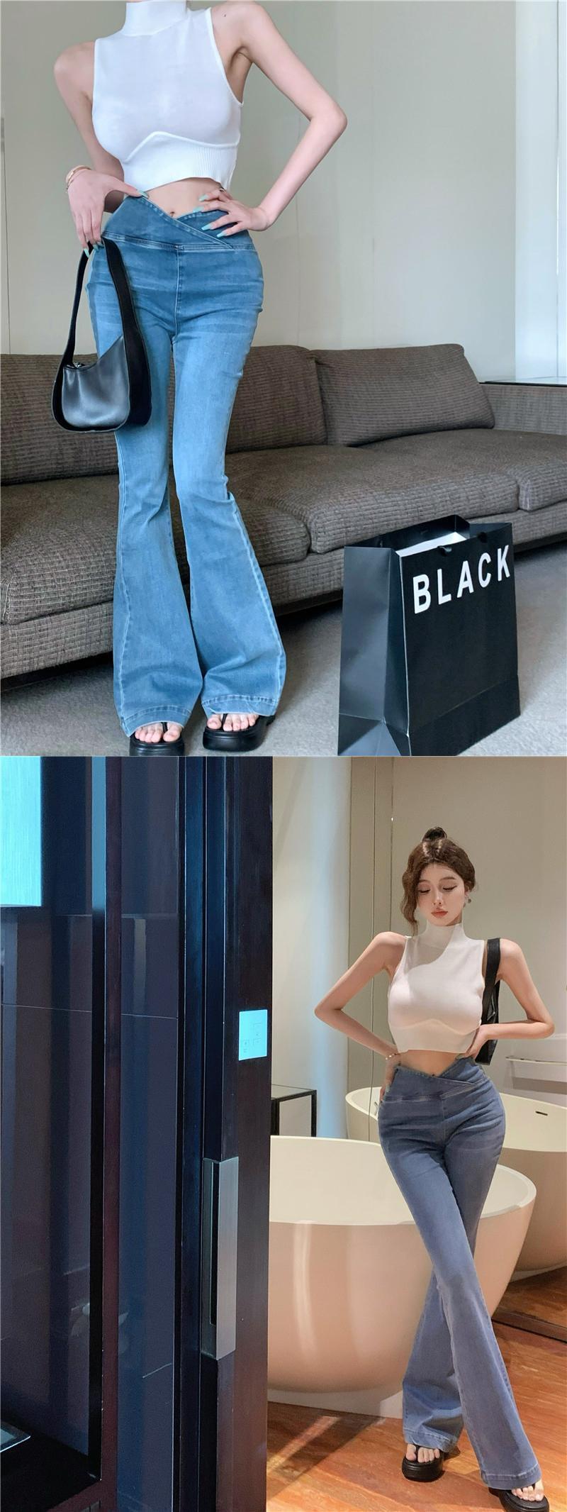 American micro-flare jeans women's summer 2022 new high-waisted slim-fit hip-lifting pants ins tide サマー 夏物 0921959751852027