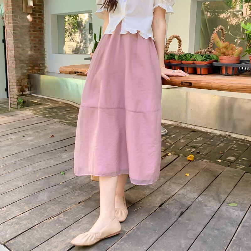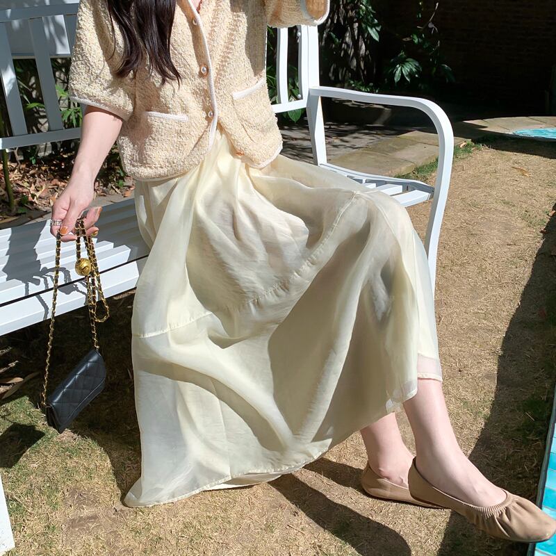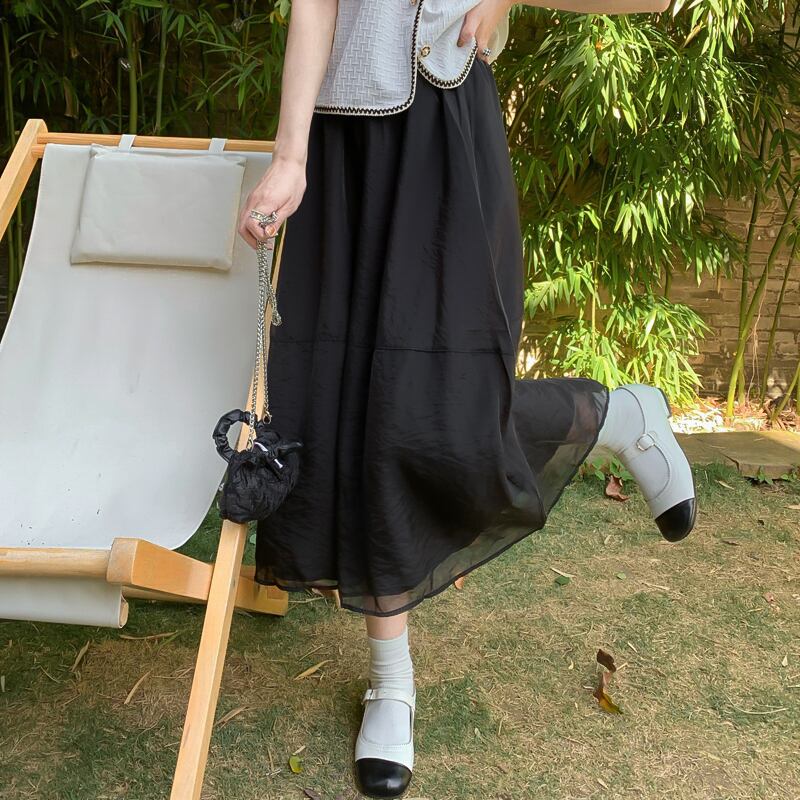 Gentle wind fairy mesh skirt women's high-end summer 2022 new high-waisted mid-length a-line umbrella skirt trend サマー 夏物 メッシュ スカート Aライン 0921977988239706