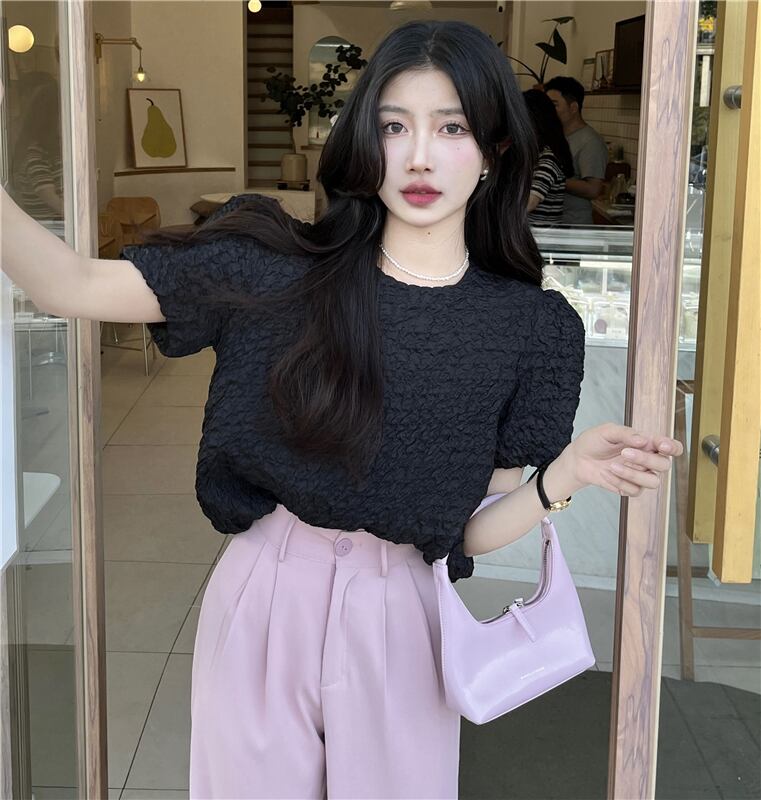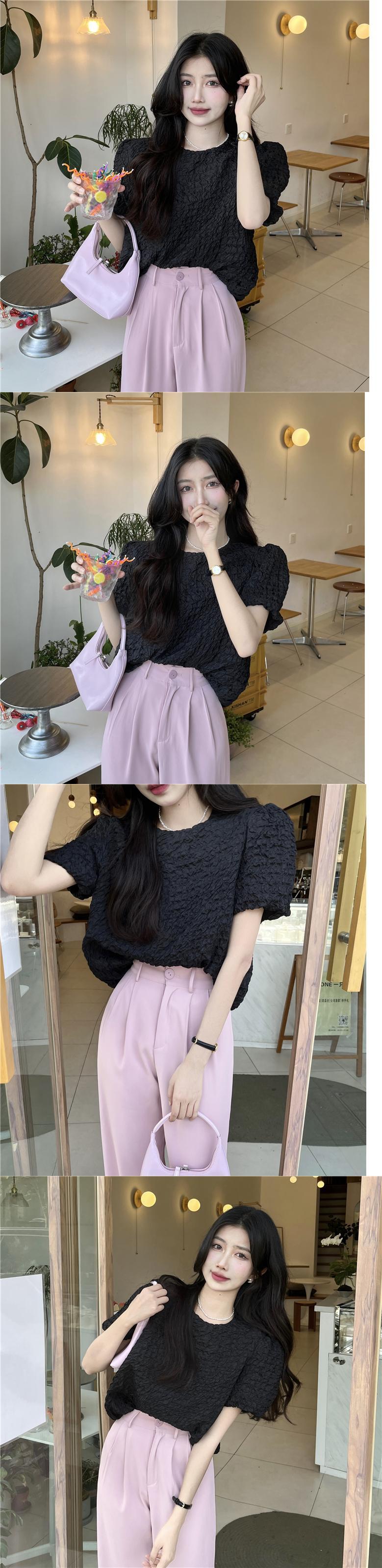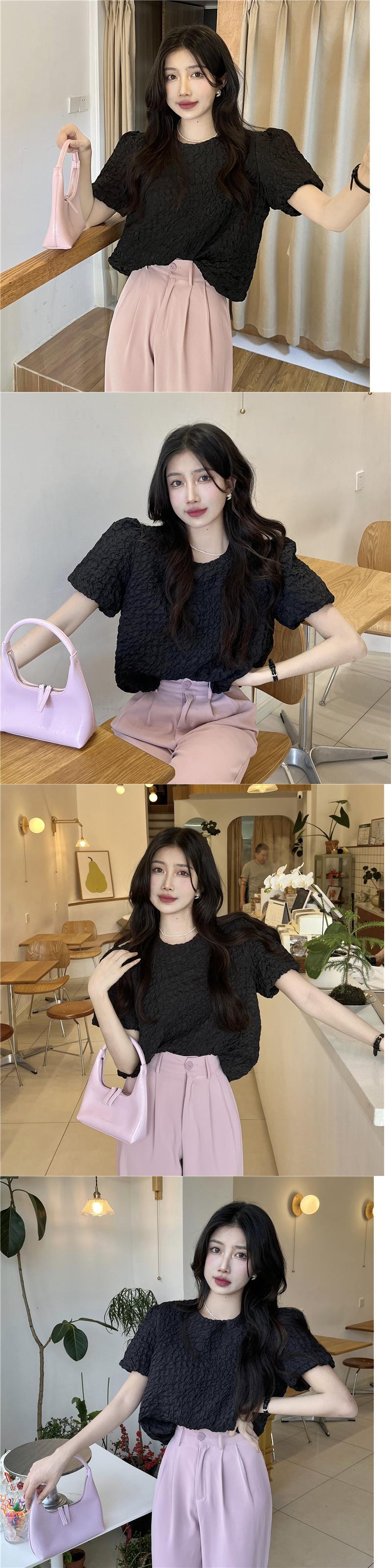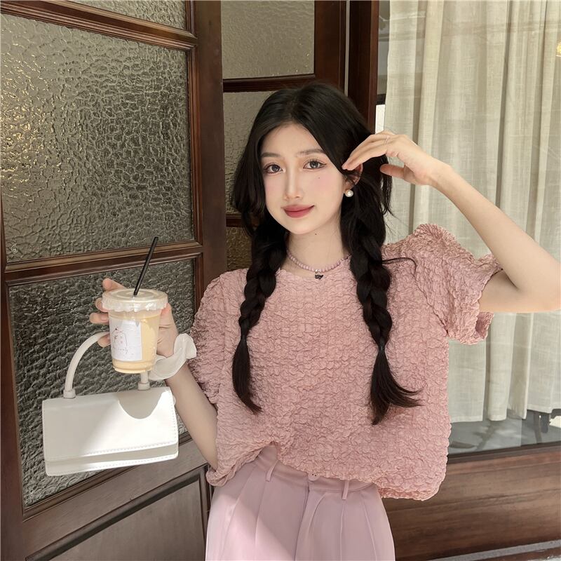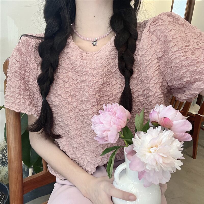 sense niche puff sleeve shirt women's summer 2022 new French loose chic pink texture top ピンク サマー 夏物 0921936537732684