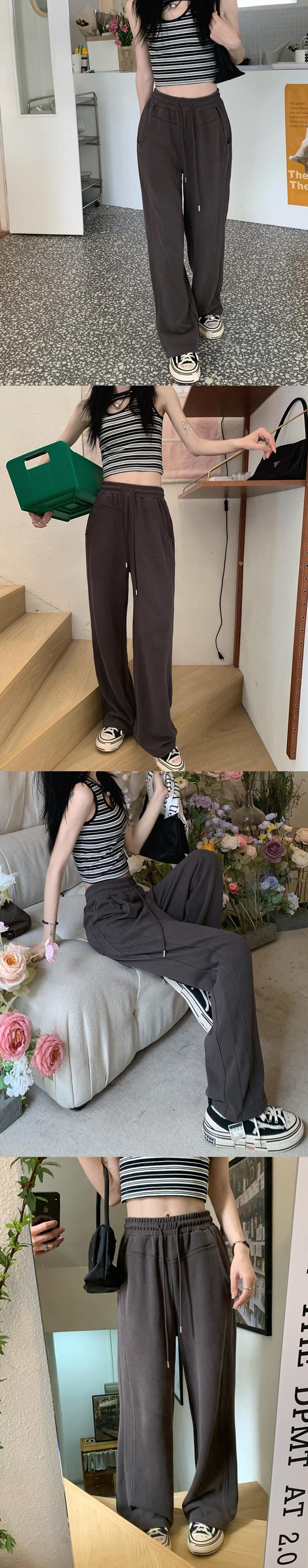 Lazy wind solid color drawstring high waist casual pants women's summer 2022 new all-match loose and thin mopping wide-leg pants ハイウェスト カジュアル サマー 夏物 ソリッドカラー 0921937274853572