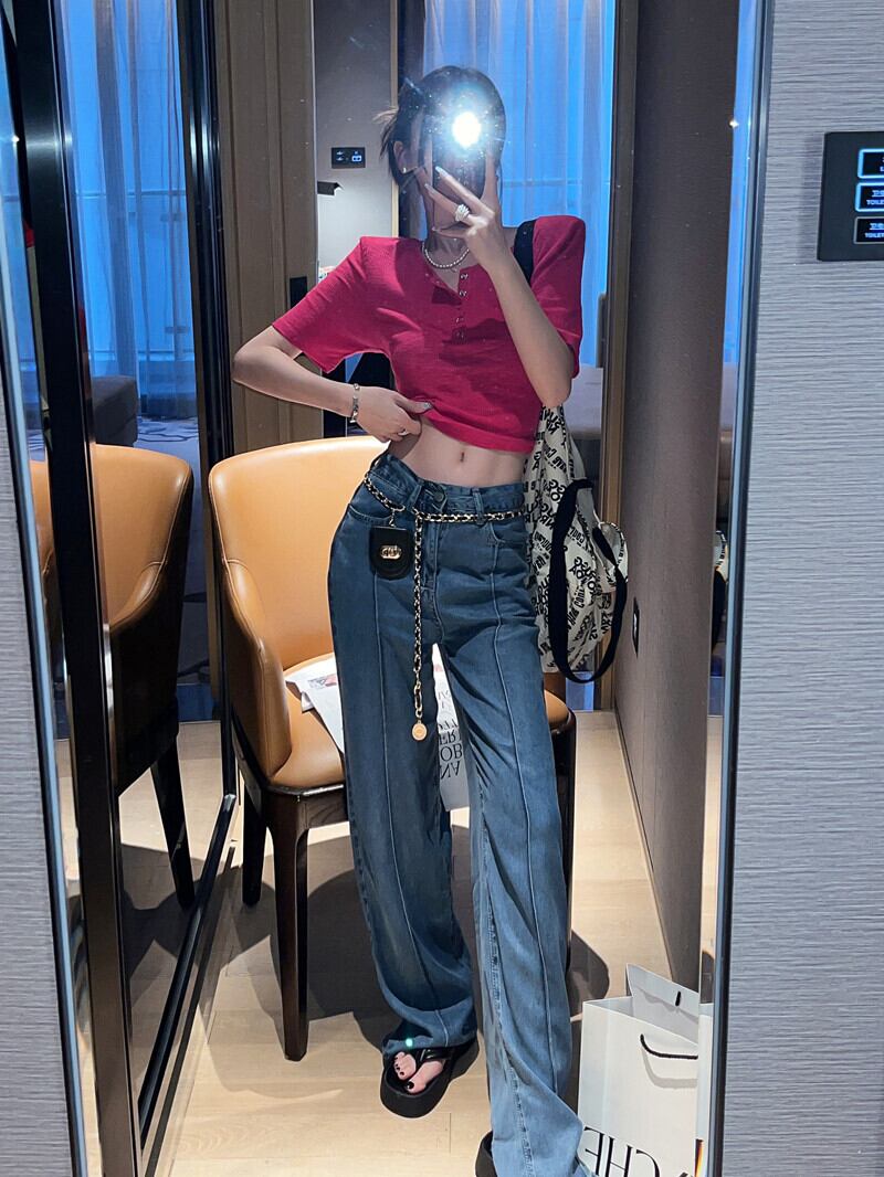 Thin Tencel Waist Jeans Women's Straight Summer 2022 Net Red Versatile Waist Thin Wide Leg Pants レッド サマー 夏物 ワイドレッグ ワイドパンツ 0921937929644338