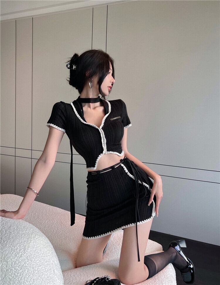 Hot hit color short-sleeved suit female summer 2022 new fashion knitted cardigan bag hip skirt two-piece tide カーディガン サマー 夏物 スカート 0921994193293387