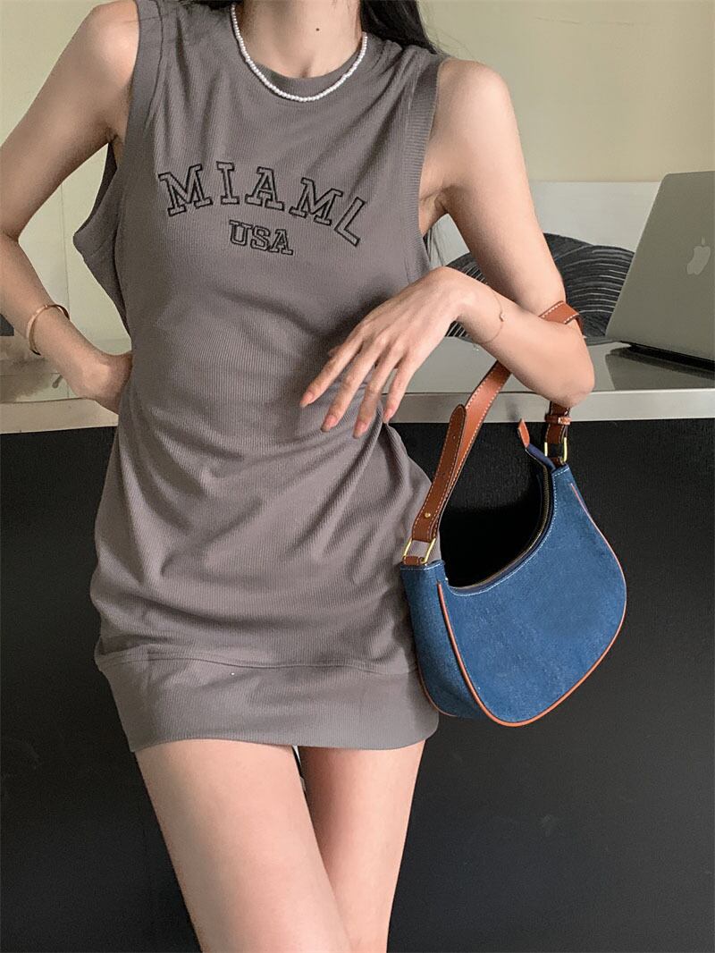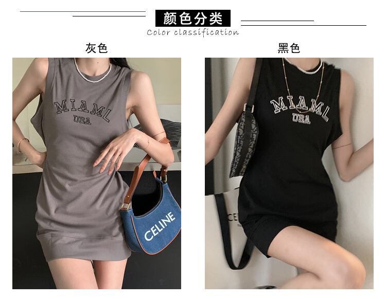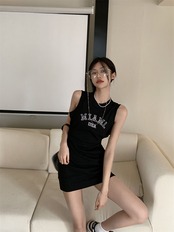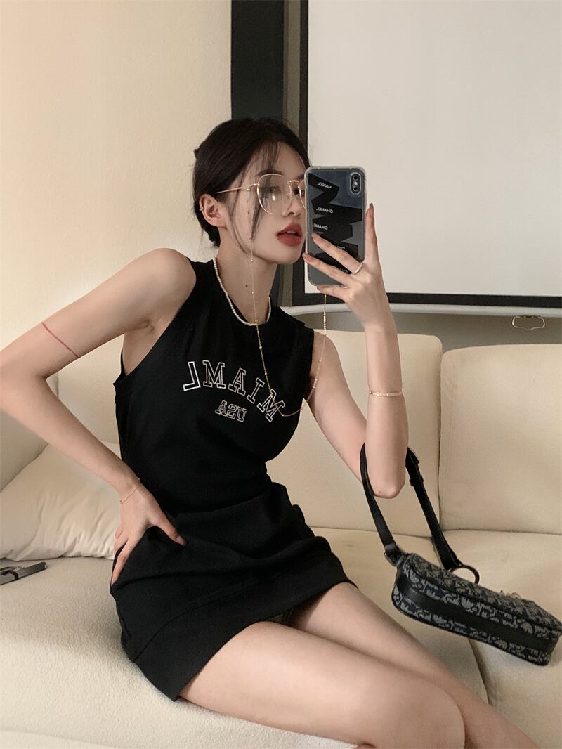 Spice Girls Alphabet Print Black Vest Dress Women's Summer 2022 Version Short Skirt ショート ブラック サマー 夏物 スカート 0921974429516917