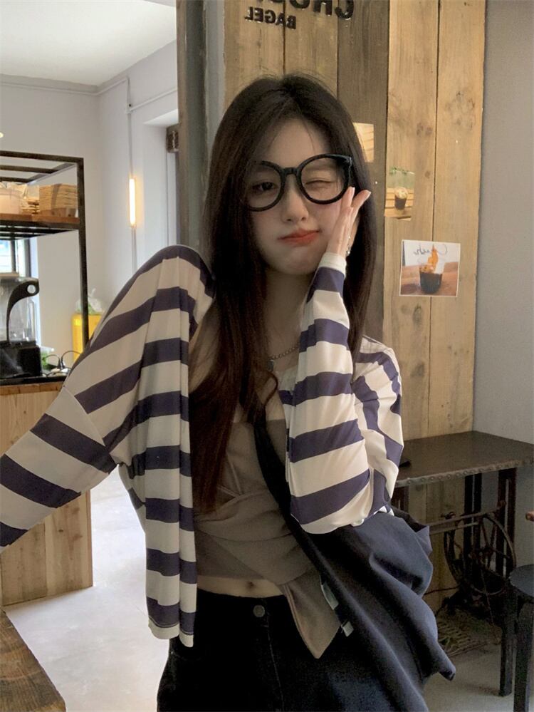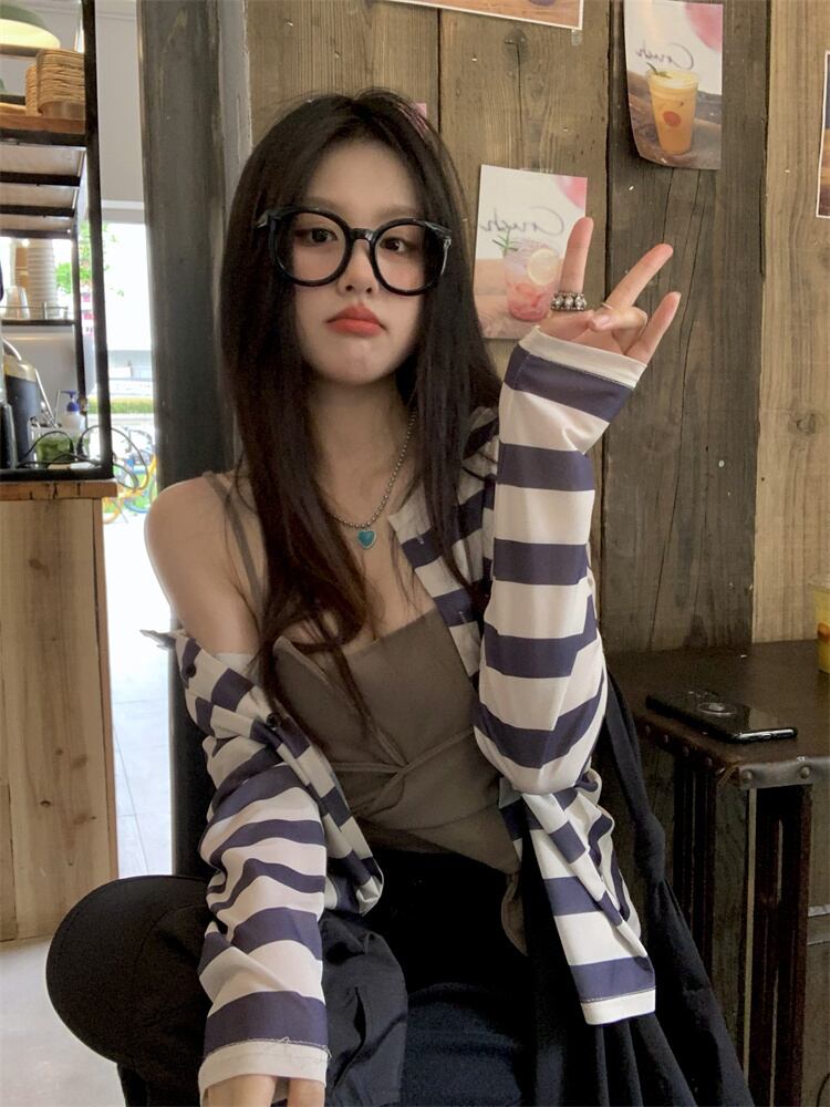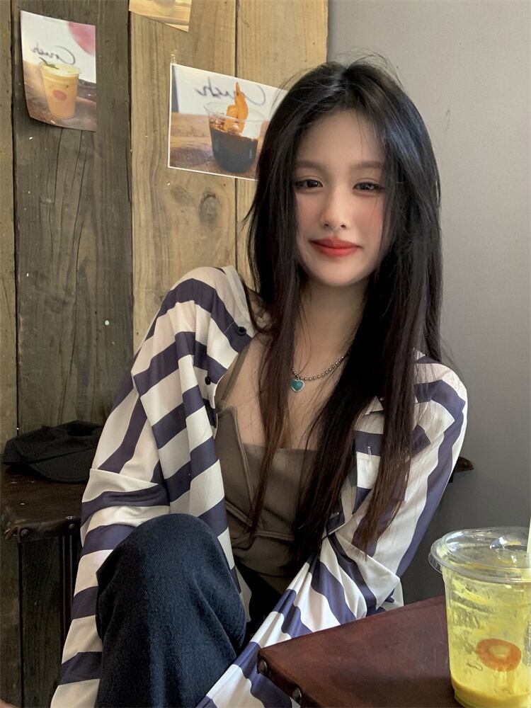 Color-blocked striped sunscreen shirt jacket women's summer 2022 new design niche loose and thin chic top サマー 夏物 ストライプ 0921941878325249