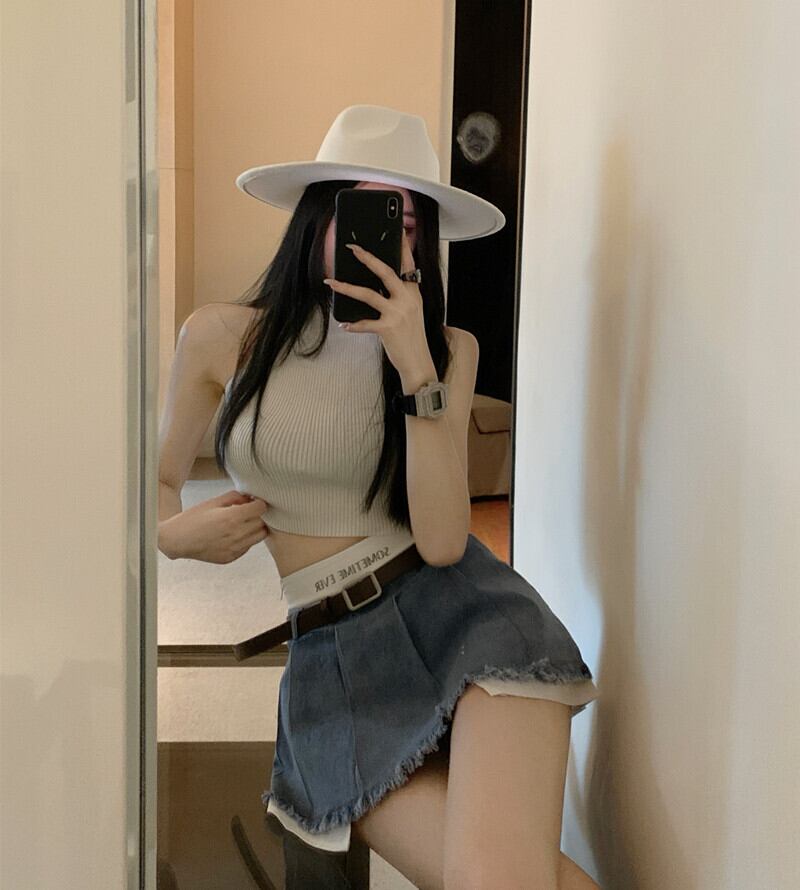 Hot fake two-piece denim skirt women's summer 2022 new small pleated skirt high waist A-line short skirt trend ハイウェスト ショート プリーツ サマー 夏物 スカート Aライン 0921938407992636