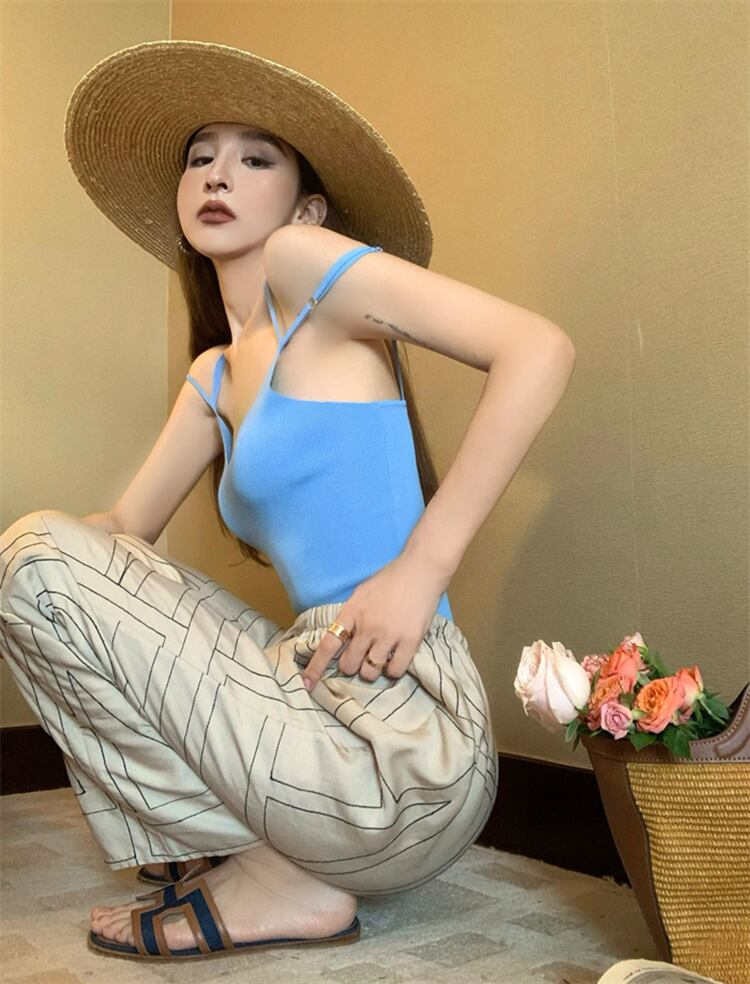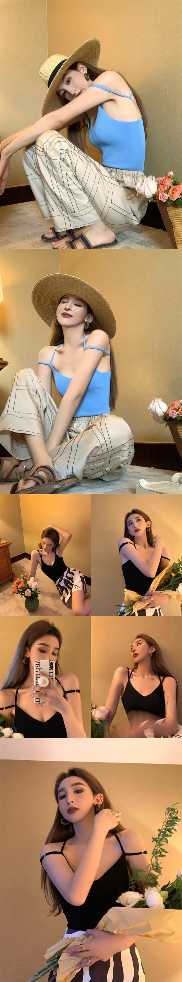 Hot V-neck strapless pink camisole female outer wear summer 2022 new temperament slim short top ins ショート ピンク サマー 夏物 Vネック スリム 0921951580902078