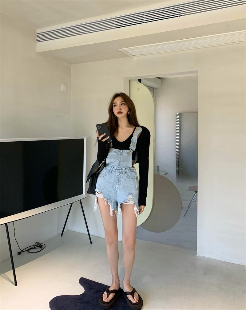 Hong Kong style chic raw edge blue strap jeans women's summer 2022 new temperament high waist wide leg shorts ハイウェスト ブルー サマー 夏物 ショーツ ブルマー ワイドレッグ ワイドパンツ 0921995746726707