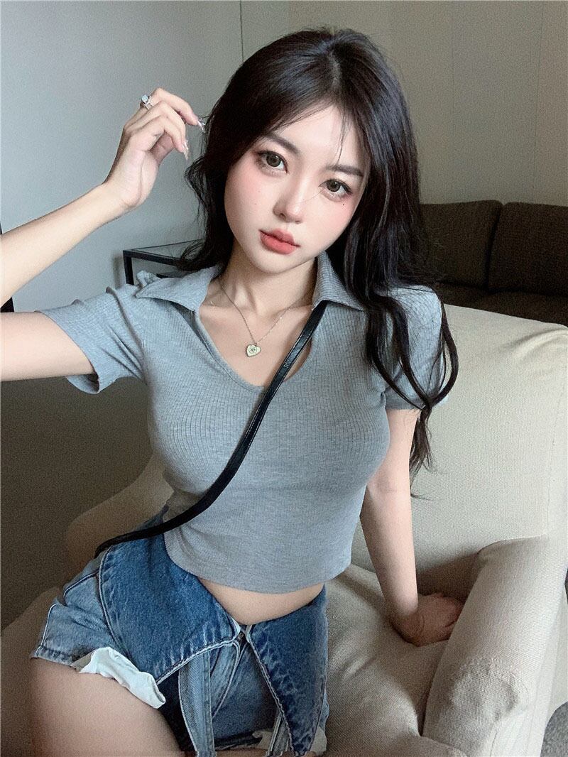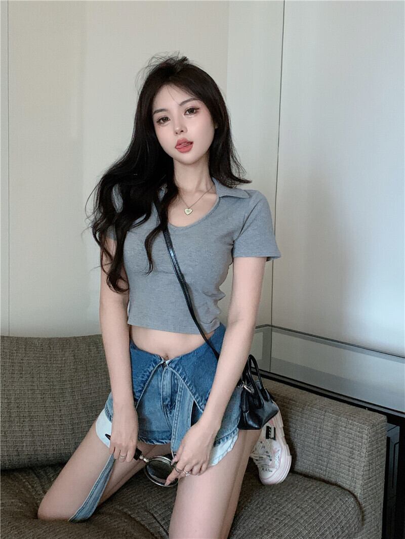Pure desire gray short-sleeved t-shirt female ins tide summer 2022 new net red all-match slim bottoming shirt short top ショート レッド サマー 夏物 スリム Tシャツ 0921946888825916