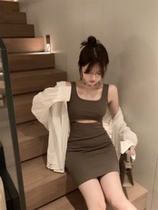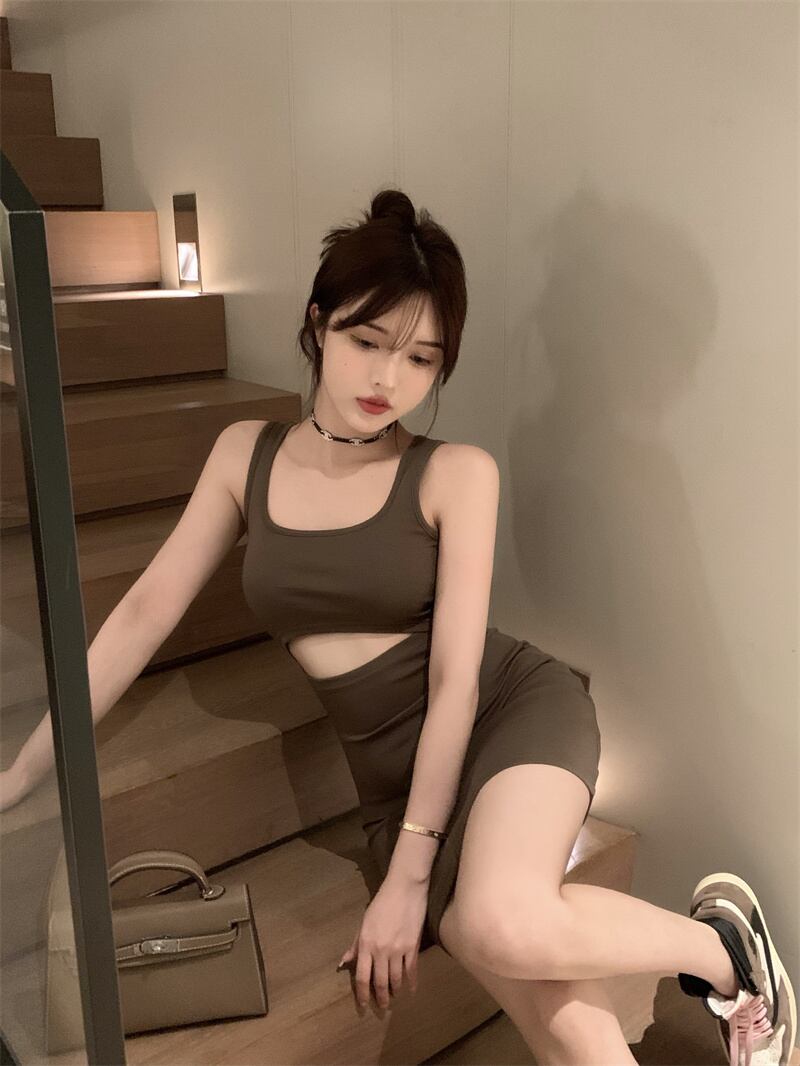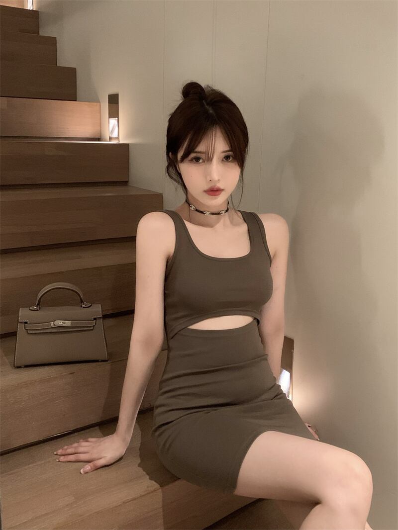 Black Hollow Vest Dress Women's Summer 2022 Chic Slim Fit Waist Show Thin Hot Girl Hip Skirt ブラック サマー 夏物 スカート スリム 0921988233792654