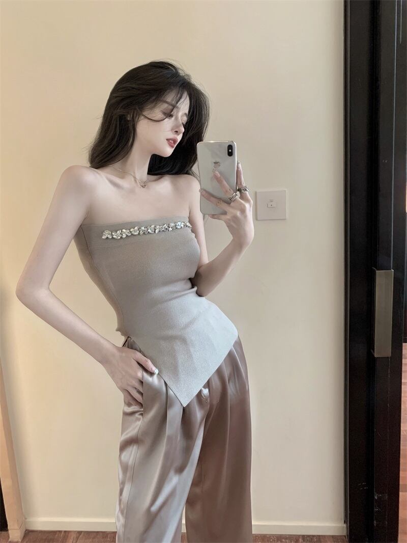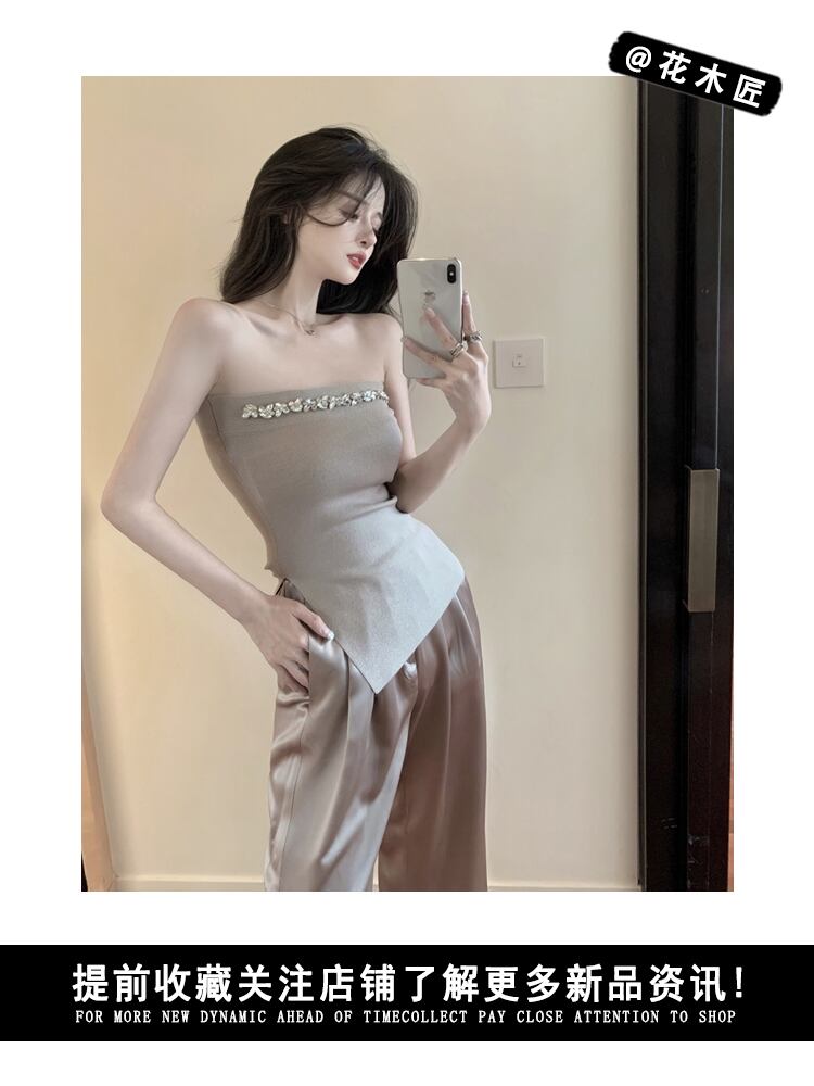 Chic heavy industry tube top top women's outer wear strapless summer 2022 new slim short slit wrap chest vest ショート サマー 夏物 スリム 0921954190171229