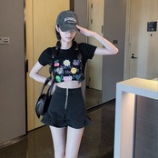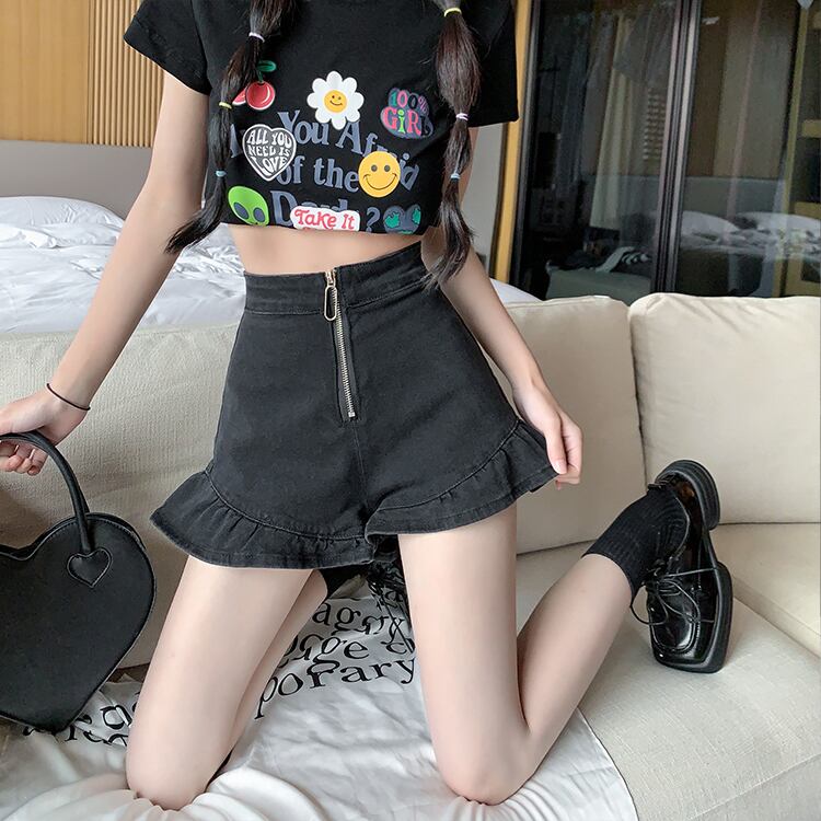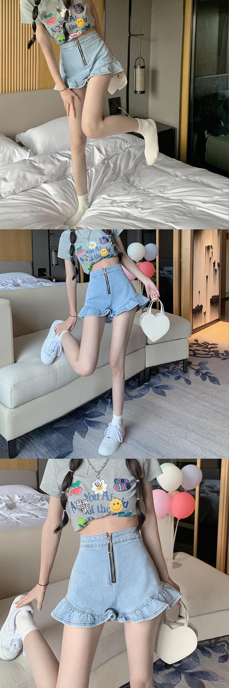 Small chic ruffled blue jeans women's summer 2022 new temperament high waist thin wide leg shorts ハイウェスト ブルー サマー 夏物 ショーツ ブルマー ワイドレッグ ワイドパンツ 0921931021083198