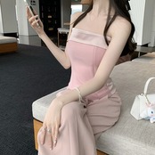 Sweet and spicy pink tube top top women's summer wear 2022 new design slim short strapless vest ショート ピンク 大人ガーリー スウィート キュート カジュアル サマー 夏物 スリム 0921910635577052