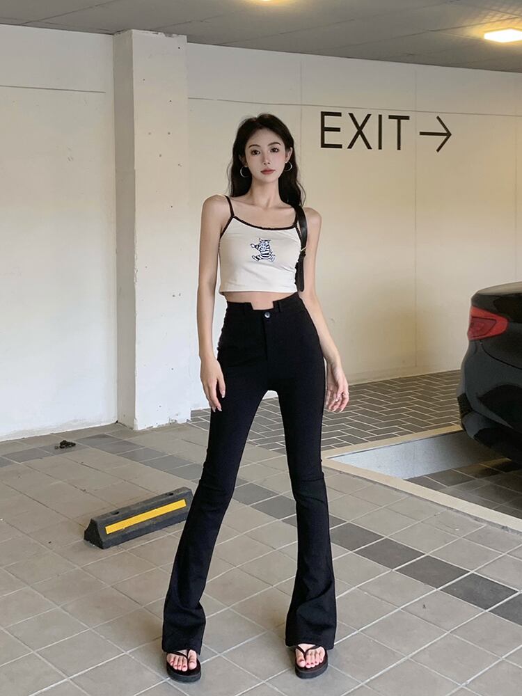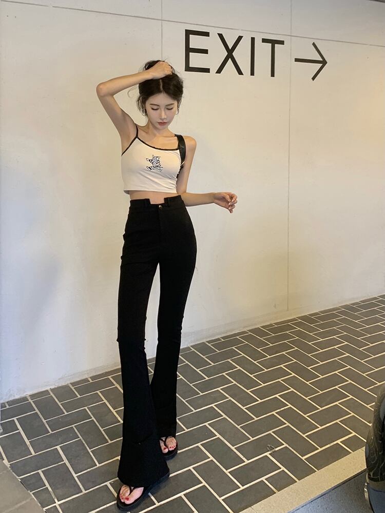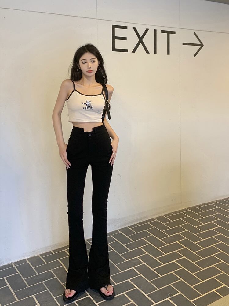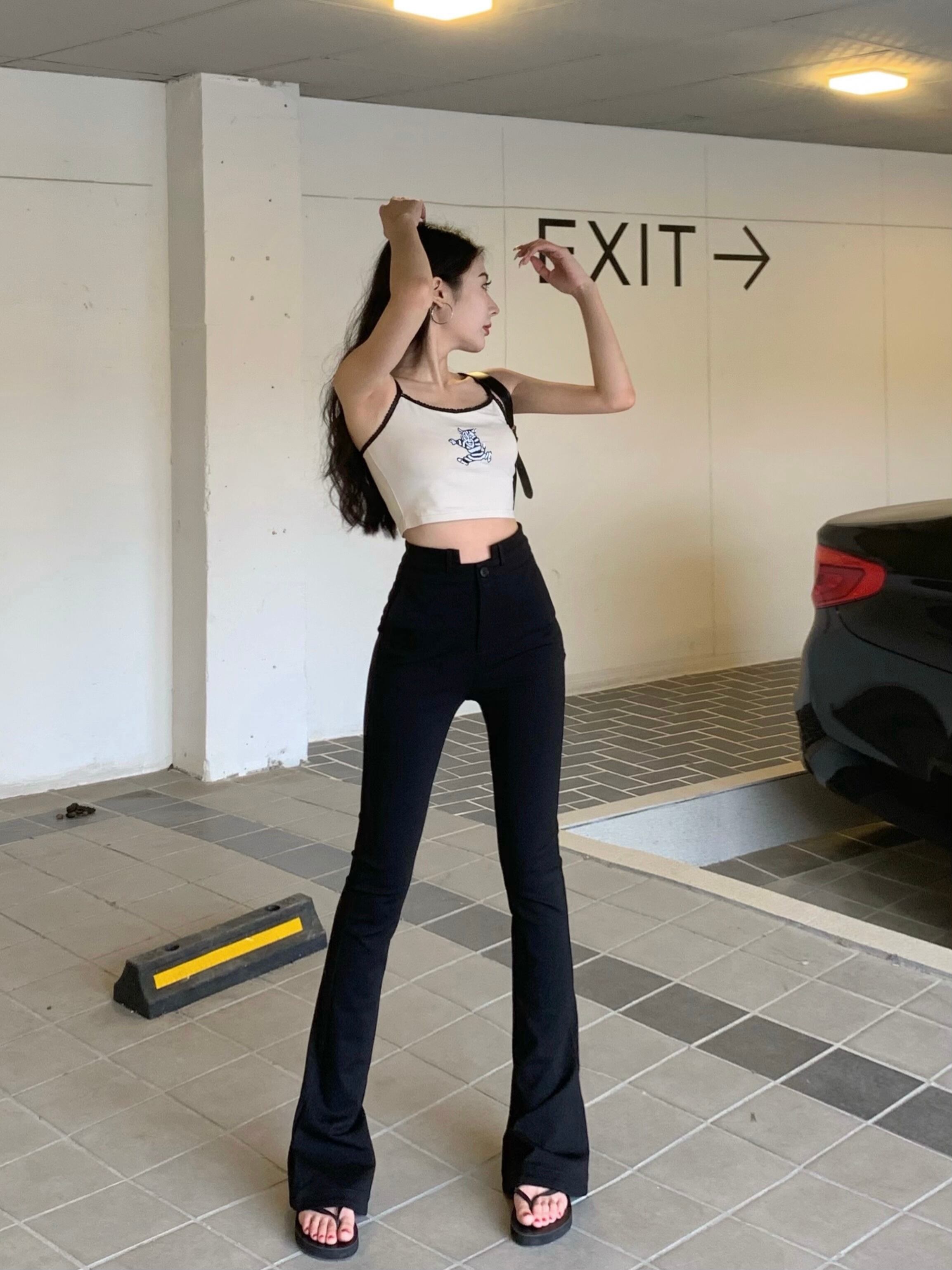 Hot black micro flared pants women's summer 2022 new net red slim horseshoe pants high waist slim casual pants ハイウェスト レッド ブラック カジュアル サマー 夏物 スリム 0921951388832632